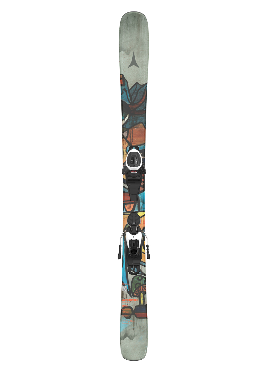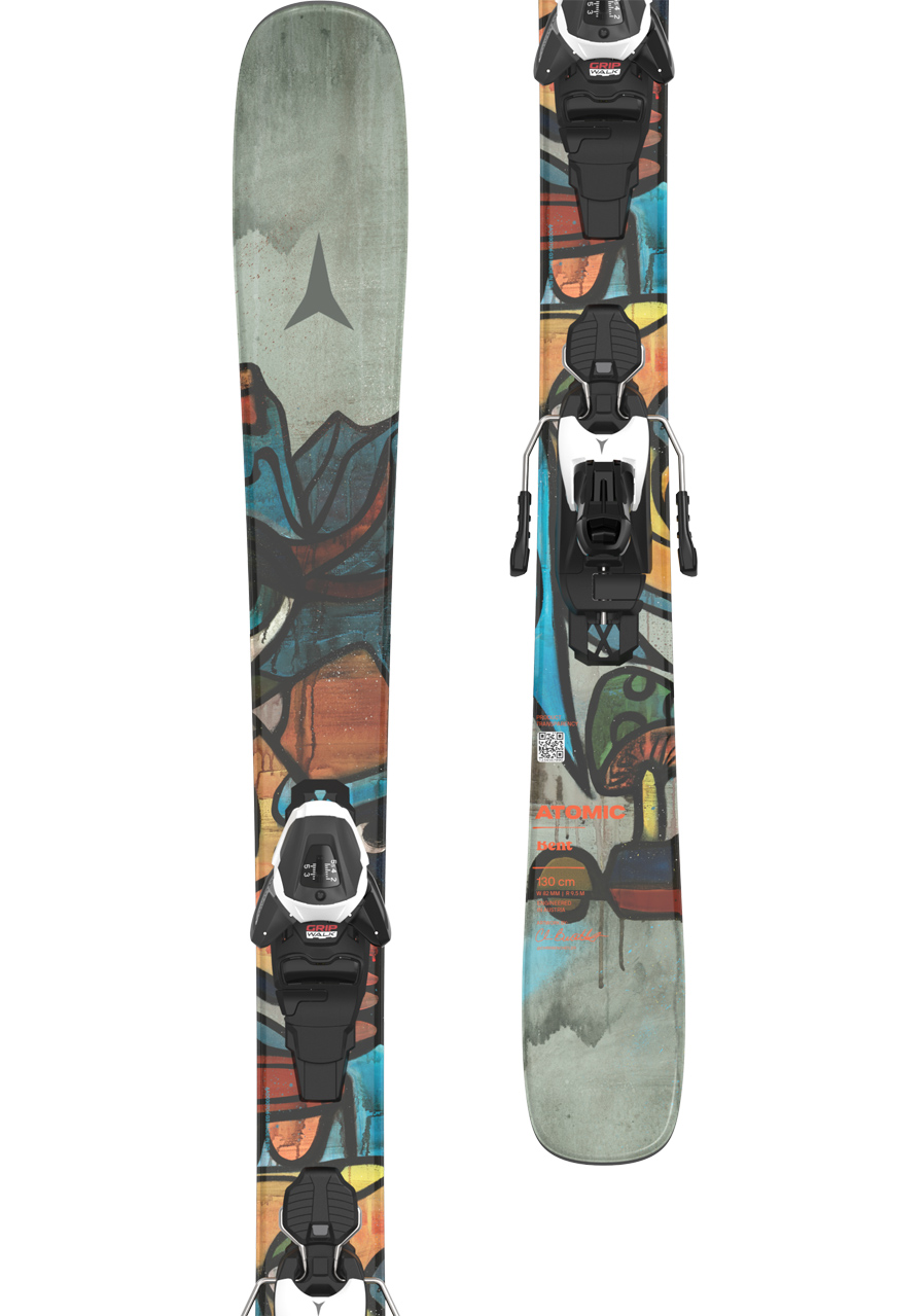 Model : Atomic Bent JR 140-150 + L 6 GW Przeznaczenie : juniorskie narty all-mountain dla chłopców i dziewcząt Budowa rdzenia: Densolite Core – lekki rdzeń piankowy o stabilnym zachowaniu Konstrukcja : Dura Cap Sidewall – wytrzymałe ścianki boczne z dobrą przyczepnością krawędzi Profil : All Mountain Rocker (czubek i pięta), camber poniżej środka Technologia : Kształt kierunkowy – łatwe prowadzenie na zakrętach Promień : ok. 13–15 m (w zależności od długości) Geometria : około 112-84-105 mm (długość około 145 cm) Wiązania : Atomic L 6 GW Zgodność wiązań : podeszwy alpejskie ISO 5355 i GripWalk Ustawienie DIN : 2–5,5