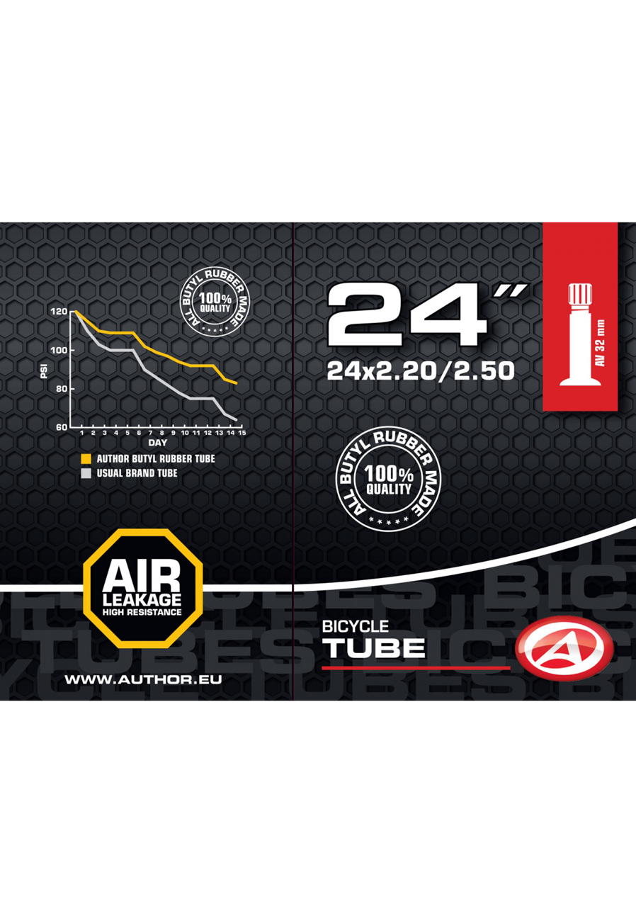Dętka Author AT-CMP-24 to niezawodna dętka rowerowa przeznaczona do opon 24-calowych. Doskonale sprawdza się w rowerach dziecięcych, juniorskich oraz górskich w mniejszych rozmiarach. Wykonana z wysokiej jakości gumy butylowej, zapewnia długą żywotność, doskonałą szczelność i odporność na przebicia.