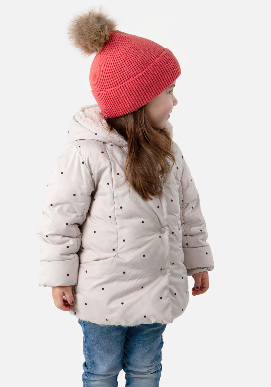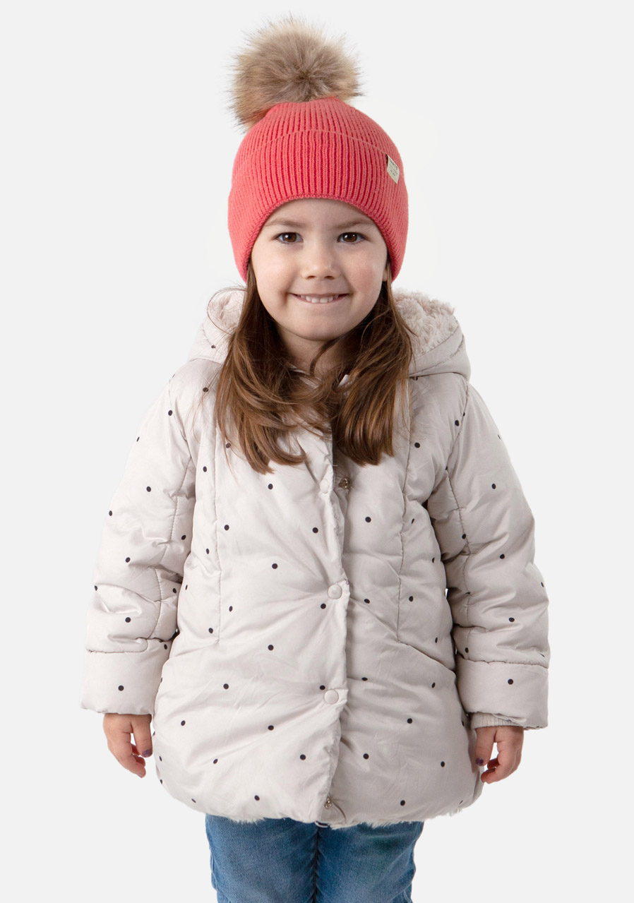 - dívčí pletená čepice s potiskem srdíček