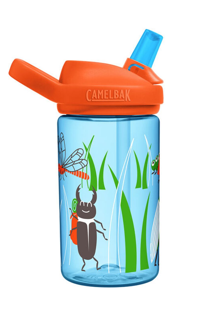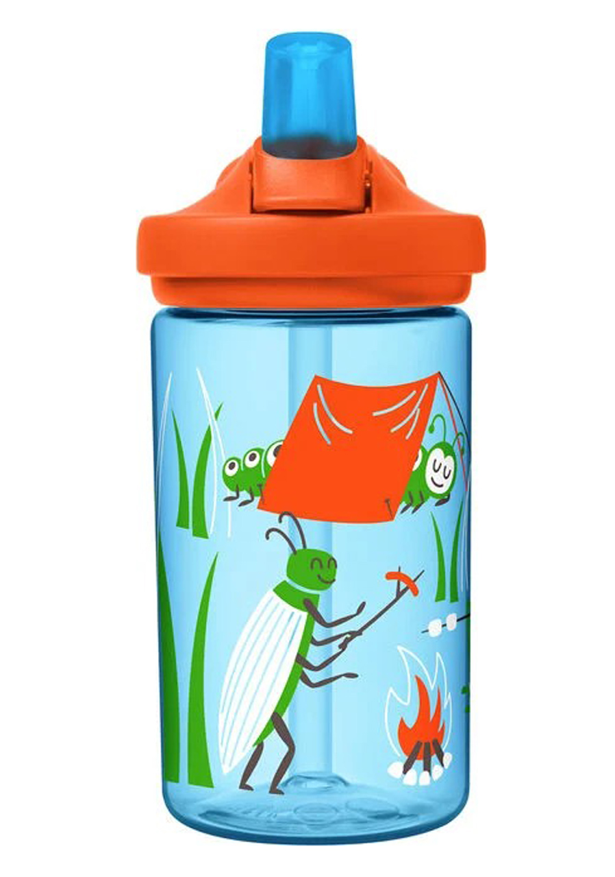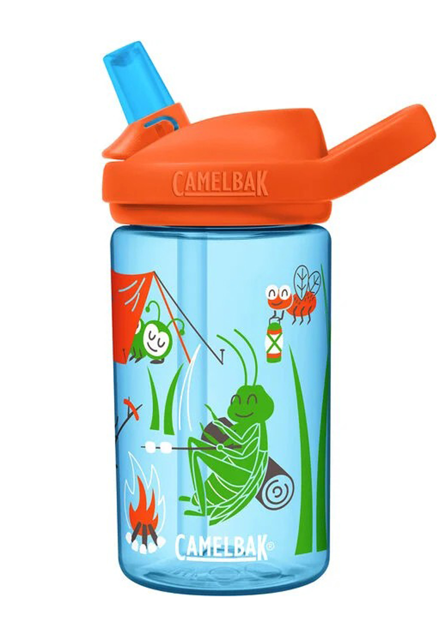 Butelka dziecięca CamelBak Eddy+ Kids 0,4l z motywem Camping Bugs to idealny wybór na codzienne nawodnienie małych odkrywców. Wykonana z wytrzymałego materiału Tritan, w 100 % wolnego od BPA, BPS i BPF, zapewnia bezpieczeństwo zdrowotne i bezpieczne użytkowanie. Wyposażona w opatentowany ustnik Bite Valve z bezpiecznego dla zdrowia silikonu, umożliwia łatwe picie bez ryzyka rozlania. Ustnik można całkowicie zamknąć, a nawet w pozycji otwartej zapobiega on rozlewaniu przy przewróceniu butelki.