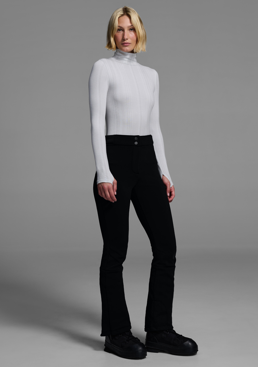 Damskie spodnie narciarskie St. Moritz łączą wysoką wydajność z eleganckim wyglądem na długie dni w górach. Wykonane są z materiału softshell Schoeller o czterokierunkowej elastyczności i z polarem w środku, co zapewnia ciepło, swobodę ruchów oraz korzystny, dopasowany krój. Dzięki elastycznemu dzianinowemu pasowi i dopracowanym detalom idealnie pasują do kurtek narciarskich CORDOVA.