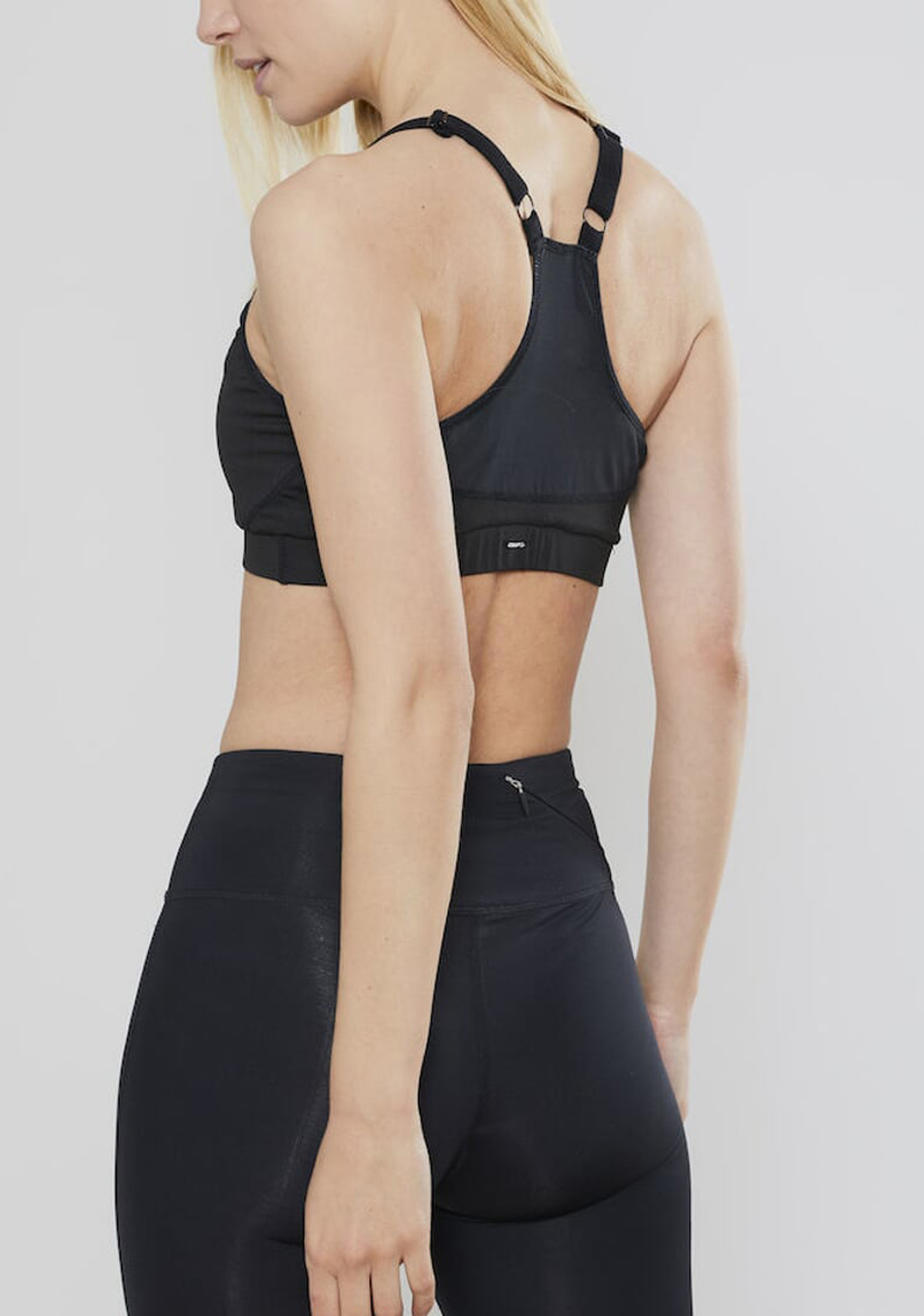 - podprsenka CRAFT Motion s výztuží vhodná pro jakékoliv sportovní aktivity. Materiál: Přední část - 84% polyester, 16% elastan Zádová část - 88% polyester, 12% elastan Podšívka - 72% polyamid, 28% elastan - podpora poprsí pro střední a vysokou intenzitu pohybu - dvojitý, mírně polstrovaný přední díl s odnímatelnou výplní - možnost regulace délky ramínek - širší krytá guma pod prsy