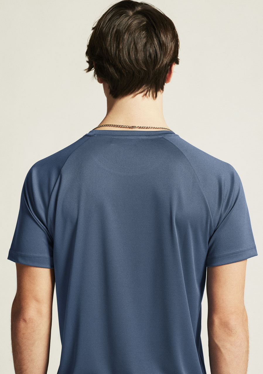 Koszulka została wykonana z miękkiego, przyjemnego w dotyku materiału z dużym udziałem poliestru pochodzącego z recyklingu. Dzięki temu jest lekka, oddychająca i przyjazna dla środowiska. Klasyczny krój zapewnia swobodę ruchów i wygodne dopasowanie.