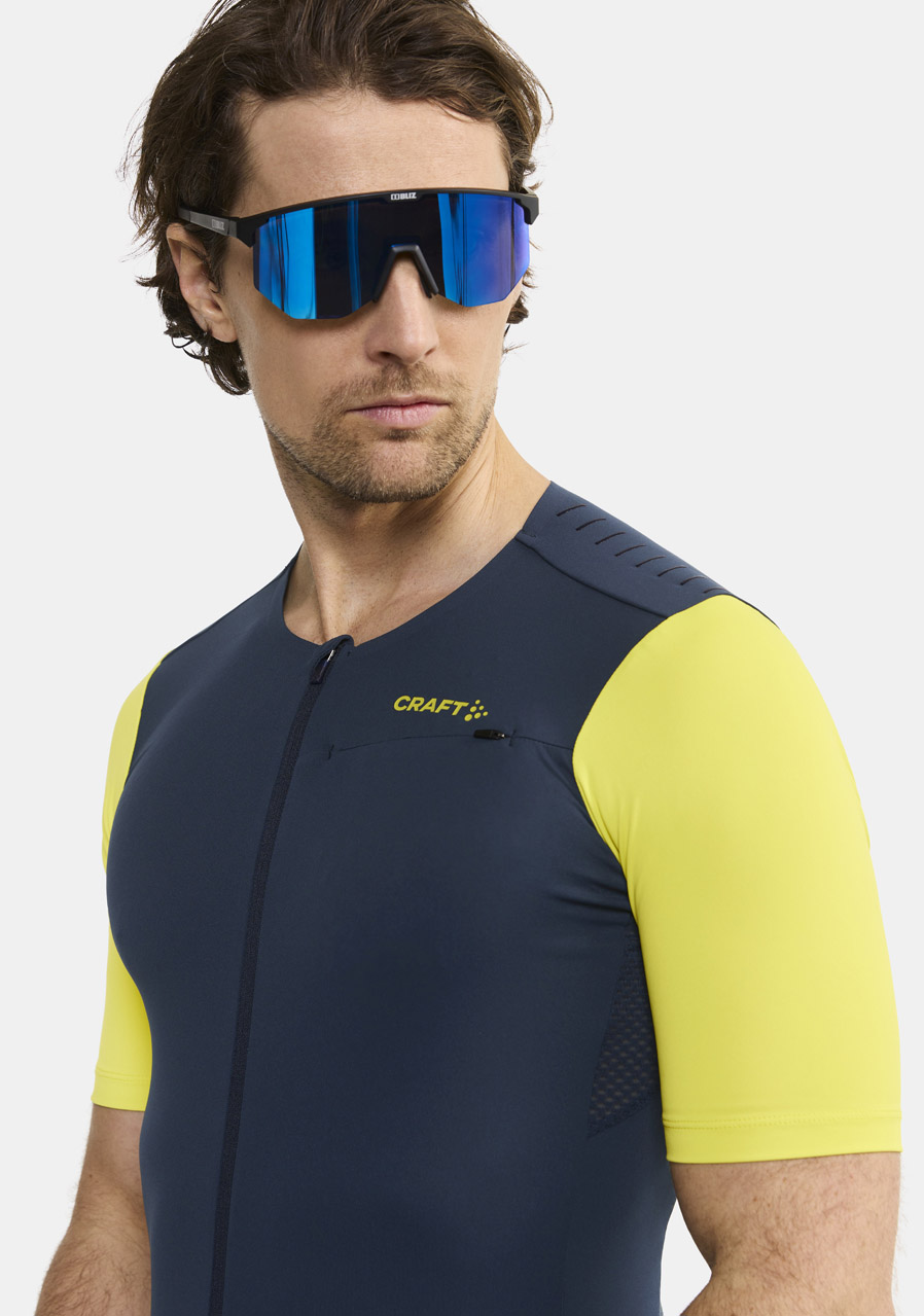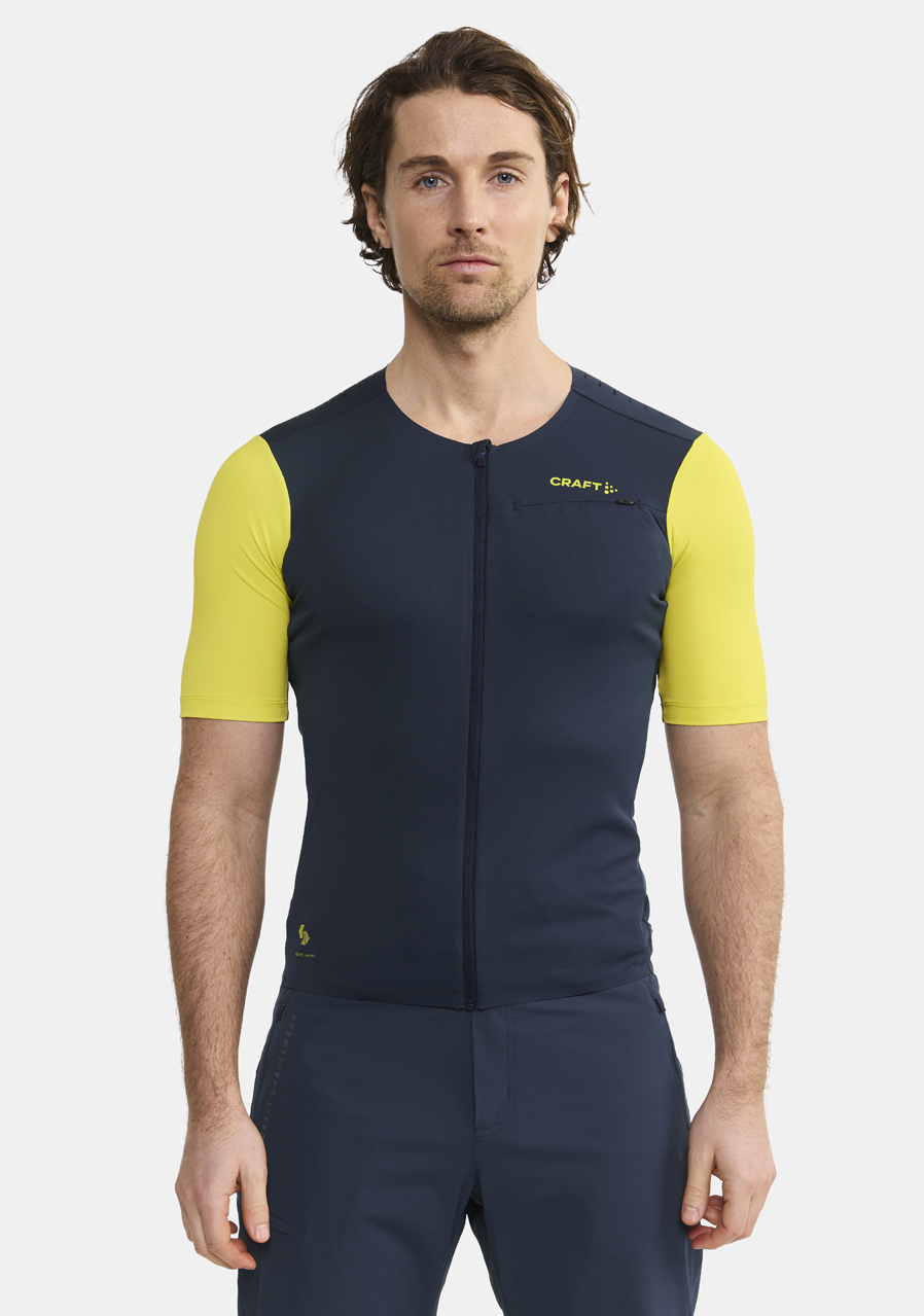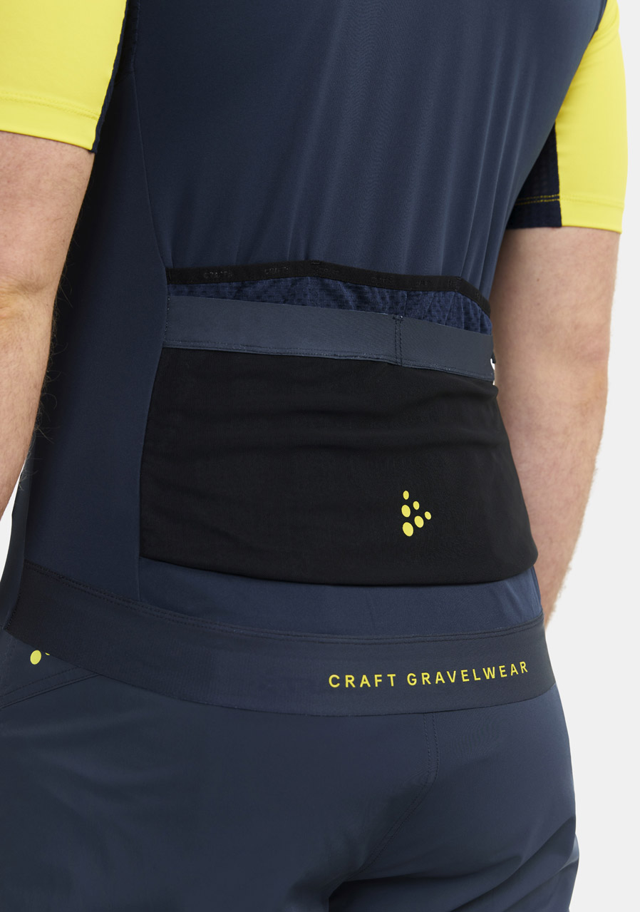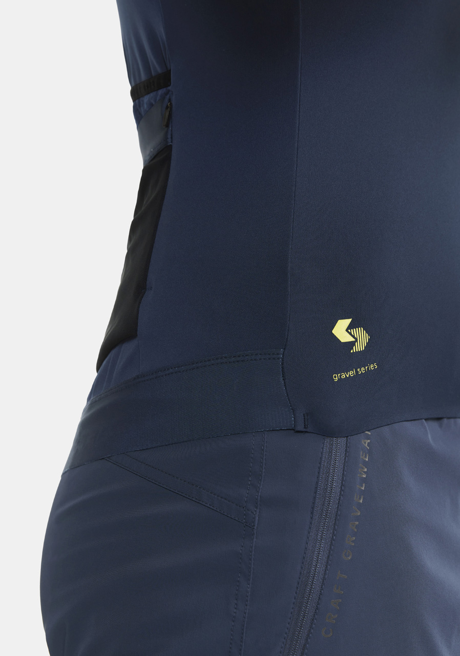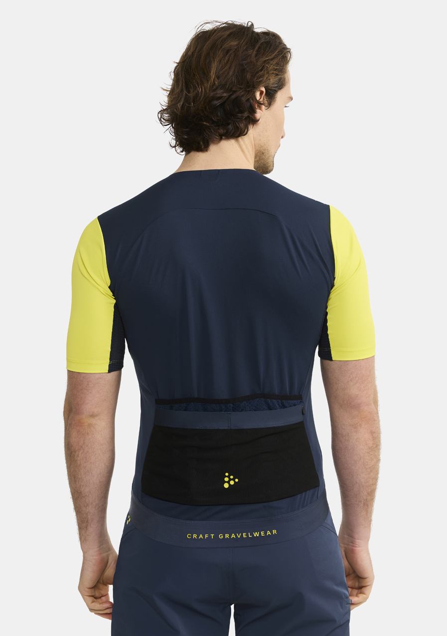 Zaawansowana technicznie koszulka gravelowa dla wymagających rowerzystów ceniących komfort, jakość i funkcjonalność. Ergonomiczny krój doskonale dopasowuje się do ciała i wspiera swobodę ruchów. Tkanina efektywnie odprowadza wilgoć, szybko schnie i zapewnia efekt chłodzenia. Elementy odblaskowe zwiększają bezpieczeństwo podczas jazdy w słabszym oświetleniu. Na ramionach zastosowano silikonowy nadruk, który poprawia stabilność plecaka. Kołnierz jest specjalnie profilowany z tyłu szyi, co zwiększa wygodę podczas jazdy w pozycji pochylonej. Pod pachami znajduje się przewiewny panel Mesh Superlight dla lepszej wentylacji. Przód koszulki wykończony jest klejonym szwem, tył szeroką gumą z silikonem, która utrzymuje koszulkę na miejscu. Na plecach trzy kieszenie z siatki, dodatkowa kieszonka na zamek i jedna duża elastyczna kieszeń z siatki. Z przodu znajduje się także kieszeń na piersi z meshu.