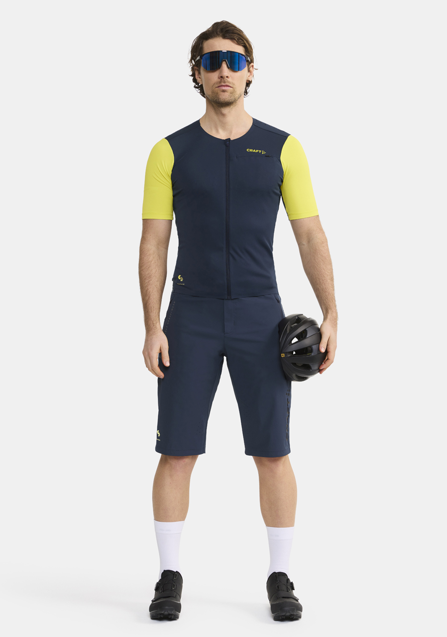 Skład materiału: 100% poliester z recyklingu, 95% poliester z recyklingu i 5% elastan, 88% poliamid i 12% elastan. Idealna na gravel, intensywną jazdę latem i długodystansowe wyprawy.