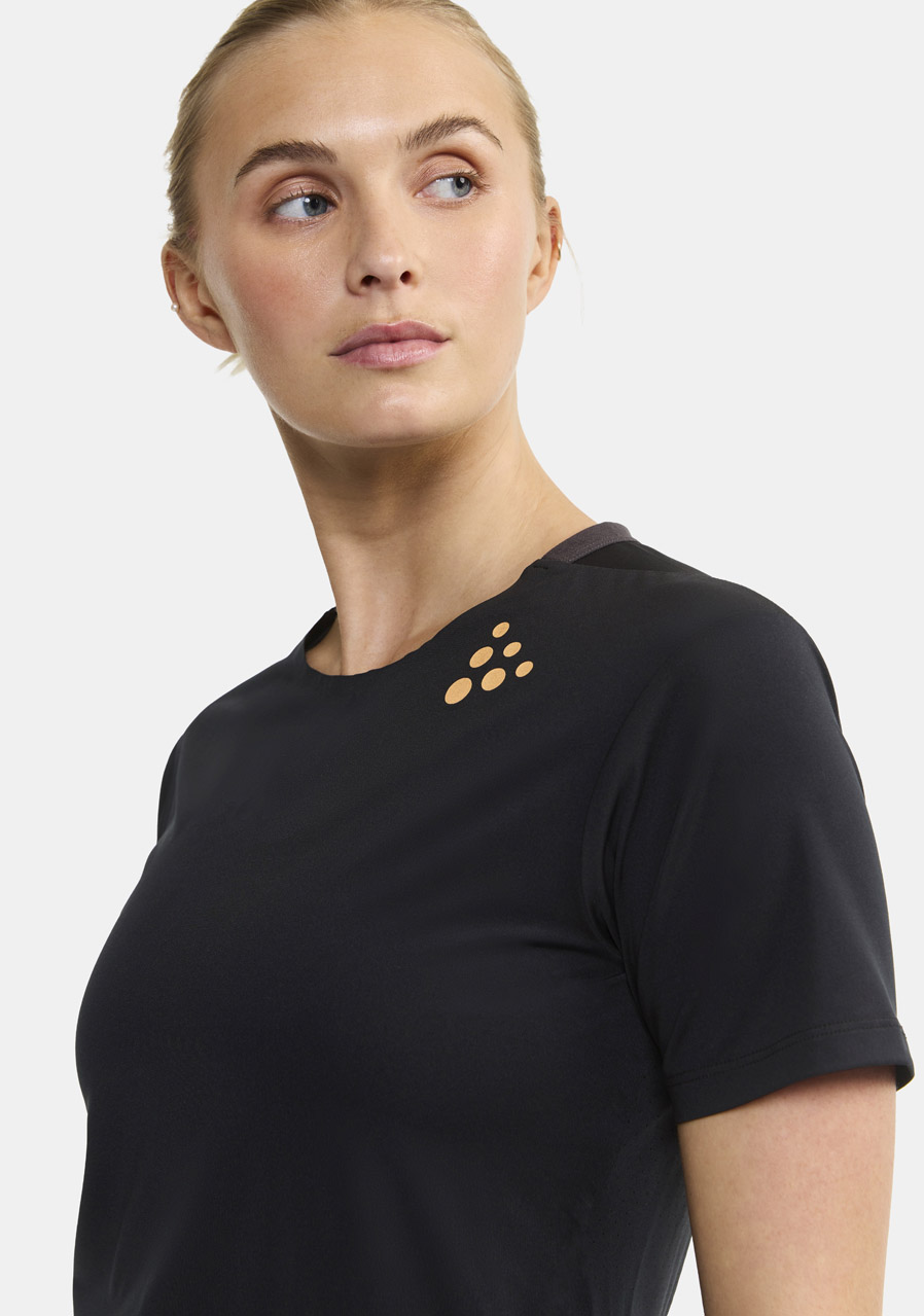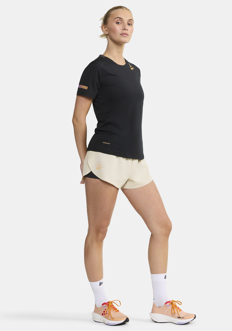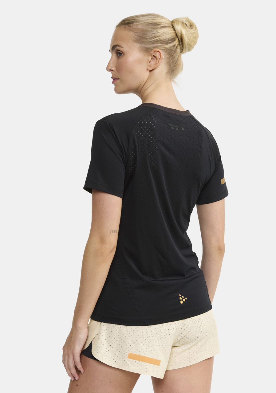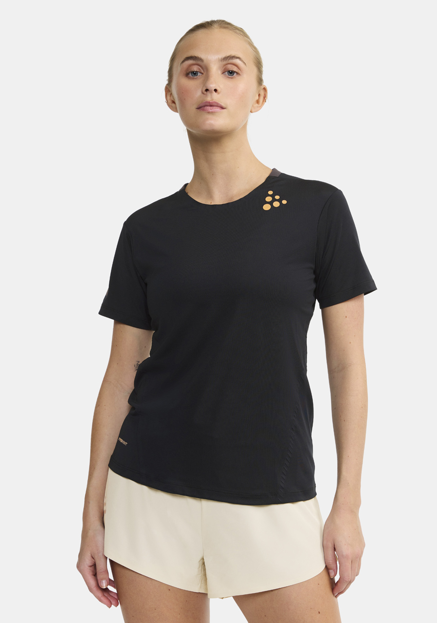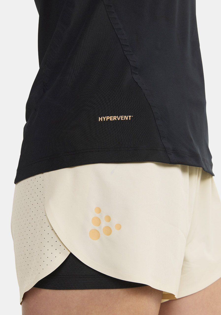 Damska koszulka Craft PRO Hypervent 2 w klasycznym czarnym kolorze została zaprojektowana dla wymagających biegaczek, które oczekują najwyższej funkcjonalności, lekkości i oddychalności. Ultralekki materiał z szybkim odprowadzaniem potu oraz strategicznie rozmieszczone panele wentylacyjne zapewniają doskonały komfort nawet przy dużym obciążeniu i wysokich temperaturach. Idealna na intensywne treningi i starty w zawodach.