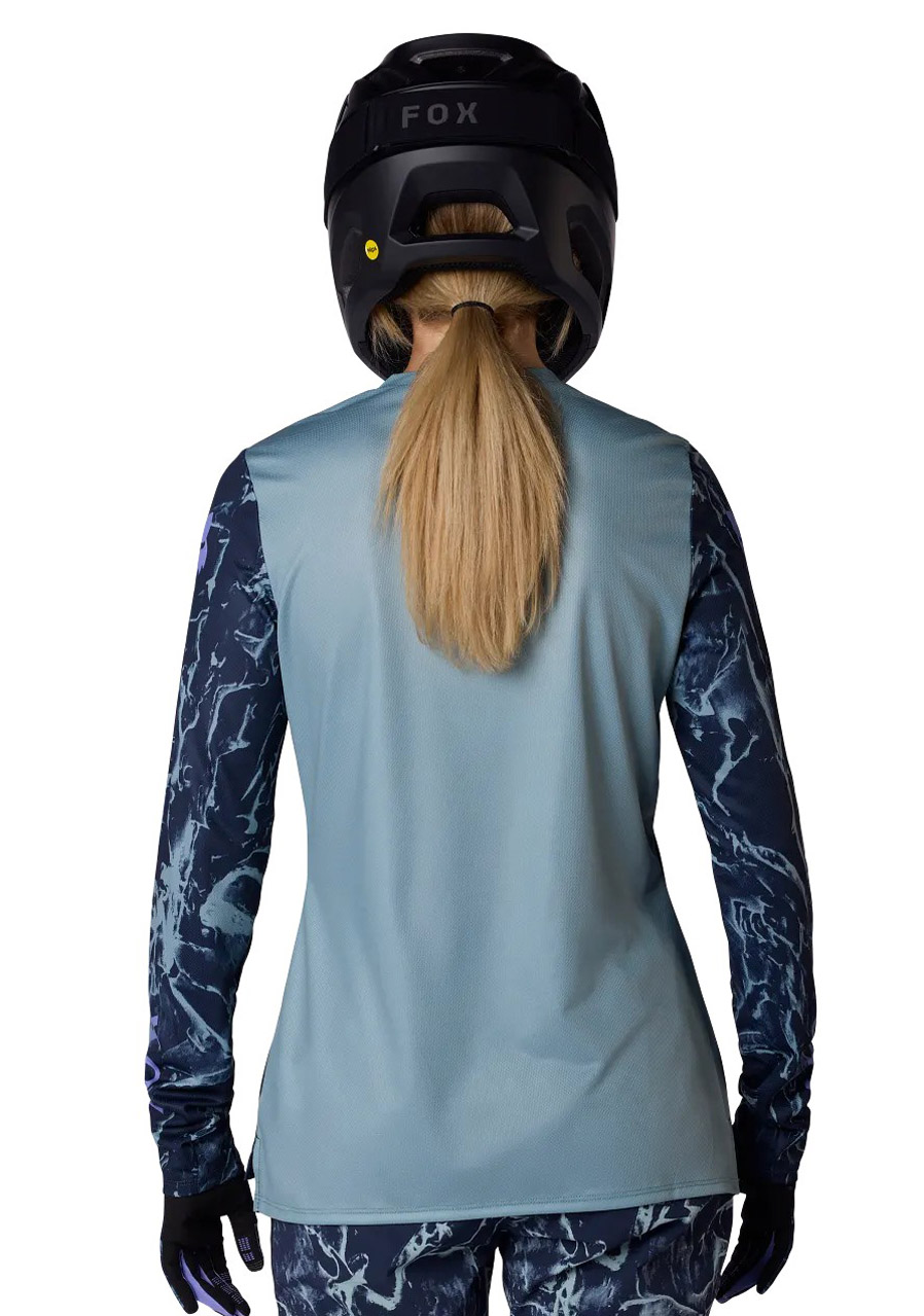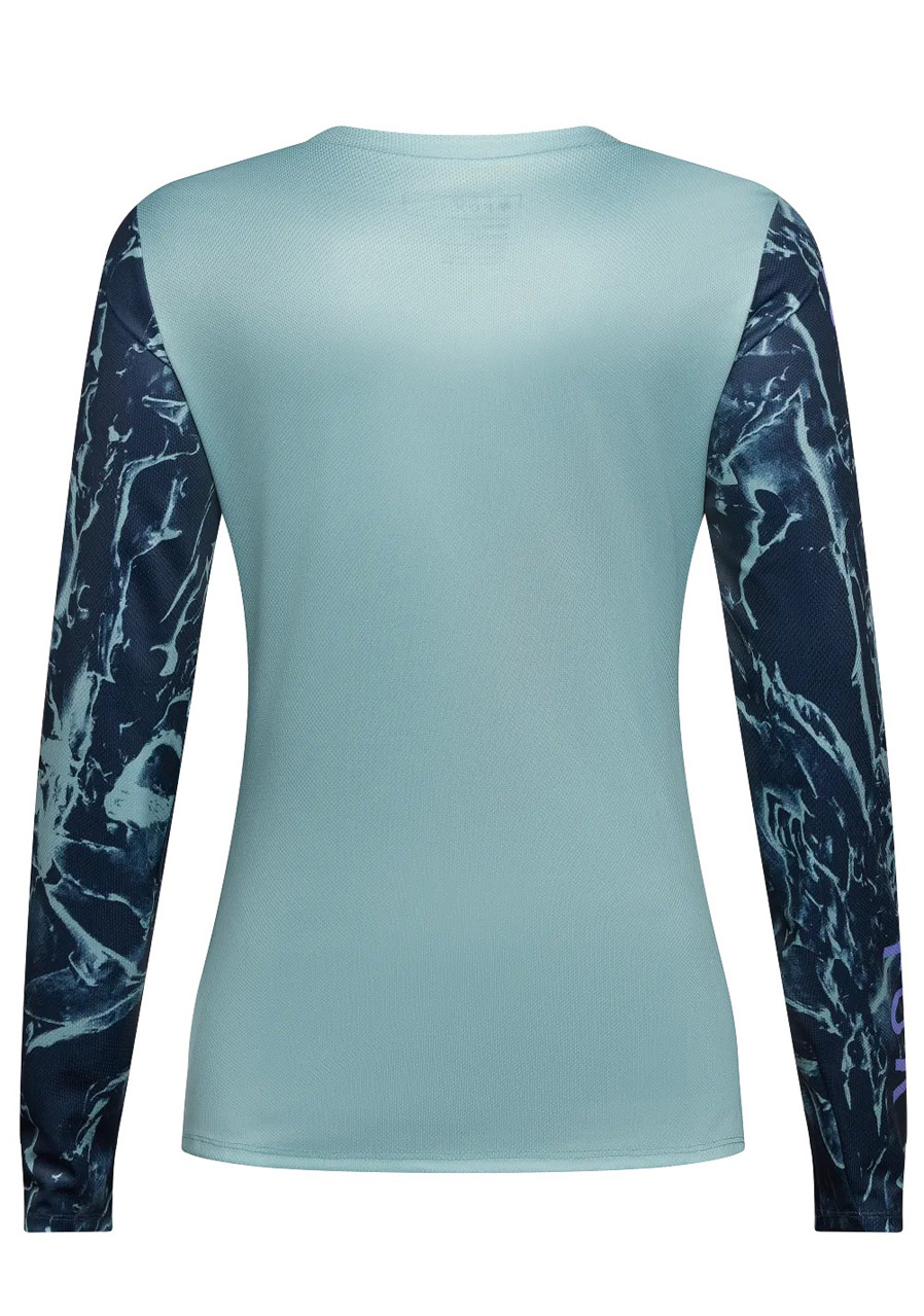Parametry: Materiał : 100% poliester Technologia : TruDri® – szybkie odprowadzanie potu i schnięcie Krój : specjalny krój damski, wygodny i funkcjonalny Rękawy : długie Część tylna : wydłużona dla lepszego pokrycia pleców Projekt : grafika drukowana Img Print Arctic Blue Nadaje się do : jazdy na rowerze górskim, szlakowym, kolarstwa górskiego i aktywności rekreacyjnych