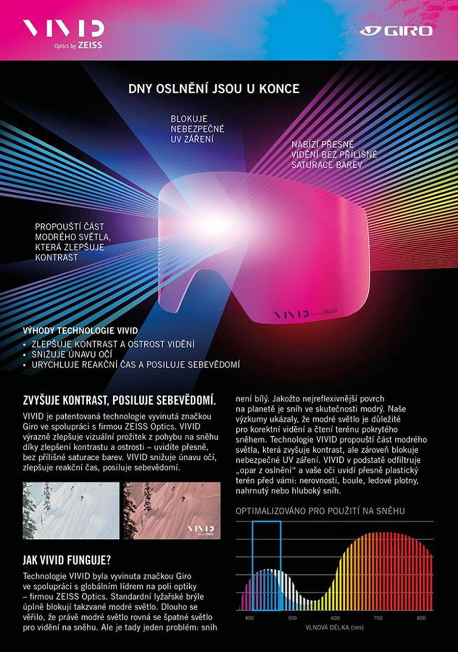 Technologie Vivid: Vivid Ember a Vivid Infrared čočky, navržené ve spolupráci s firmou ZEISS, poskytují vylepšený kontrast a jasnost, což zajišťuje lepší vizuální vnímání při různých světelných podmínkách. Tato technologie pomáhá vyniknout detailům na svahu a zlepšuje váš zážitek z lyžování.