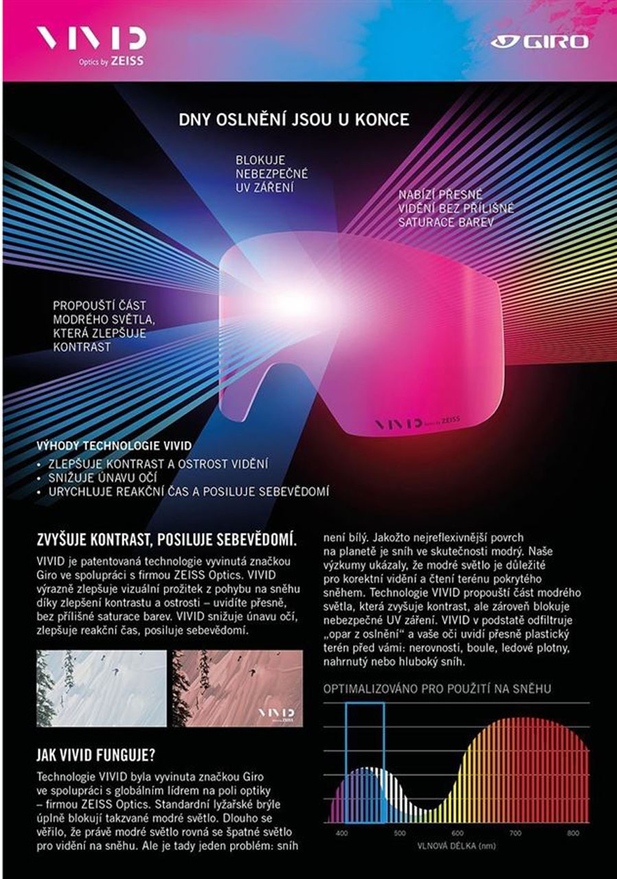 GIRO Millie jsou stylové dámské lyžařské brýle navržené pro maximální pohodlí, široké zorné pole a ostré vidění za každého počasí. Díky technologii skel VIVID Lens by ZEISS® s filtrem Vivid Pink poskytují skvělé kontrasty a eliminují oslnění na sněhu – ideální pro dny s proměnlivým nebo slabším světlem.