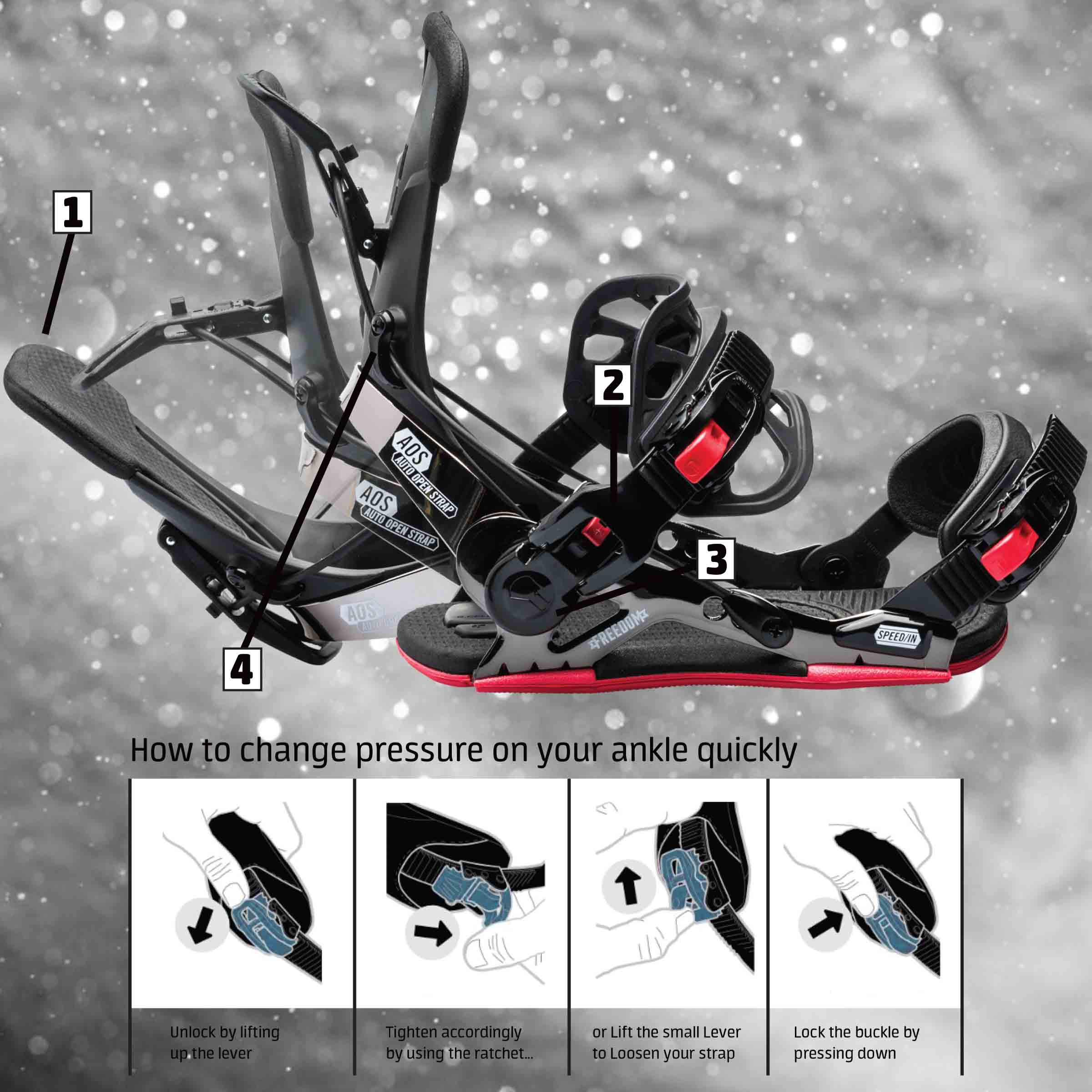 Klíčové vlastnosti: ✔ Rychlé zapínání díky Speed Entry systému – odklopná patka umožňuje snadné nazutí bez nutnosti opakovaného nastavování strapů. ✔ Možnost Dual Entry – vázání lze zapínat klasickými přezkami nebo využít rychlý nástup zadním vstupem. ✔ Odolná a lehká základna – kompozitní materiál se skelnými vlákny zajišťuje pevnost, lehkost a optimální flex. ✔ Tlumení nárazů EVA pěnou – efektivní odpružení absorbuje vibrace a nárazy pro hladkou jízdu i na tvrdém terénu. ✔ Asym Highback – anatomicky tvarovaná opěrka pro lepší kontrolu a stabilitu při jízdě a skocích. ✔ Přizpůsobitelné strapy – ergonomický kotníkový strap s měkkým polstrováním a toe strap pro bezpečné uchycení. ✔ Kompatibilita s montážními systémy – vhodné pro 4x4, Channel™ i 3D systém.