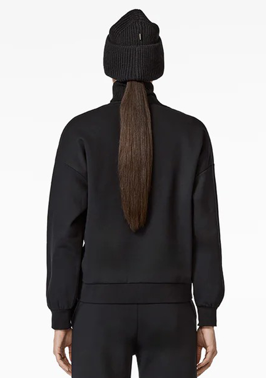 Parametry: Materiał: polar z drapaną wewnętrzną stroną Skład: 79% bawełna organiczna, 18% poliester z recyklingu, 3% elastan Długość: 62 cm w rozmiarze M (mierzone na środku pleców)