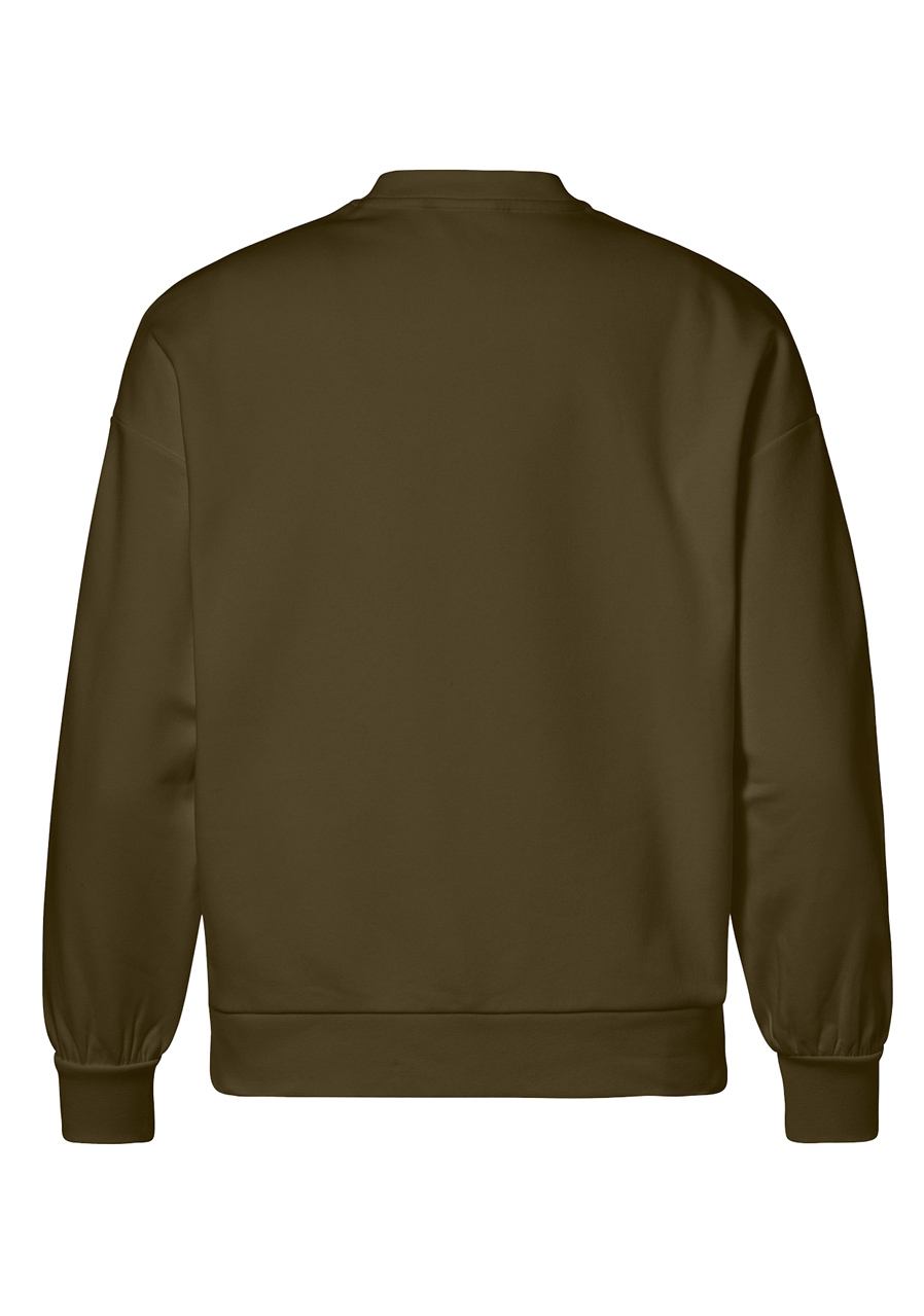 Parametry: Materiał: polar z drapaną spodnią stroną Skład: 79% bawełna organiczna, 18% poliester z recyklingu, 3% elastan Długość: 62 cm w rozmiarze M (mierzone na środku pleców)