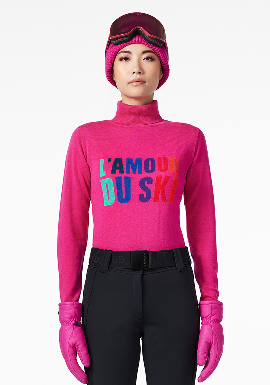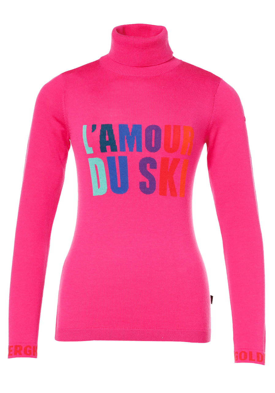Sweter Goldbergh Amour Long Sleeve Knit Sweater w kolorze różowym to stylowy i funkcjonalny model, idealny na miejskie aktywności na świeżym powietrzu i chłodniejsze dni. Dzięki zastosowaniu wełny merynosów zapewnia doskonałą izolację, pozostając przy tym oddychający. Sweter ma dopasowany krój typu slim fit, który podkreśla sylwetkę i nadaje elegancki wygląd. W projekcie znalazło się logo Goldbergh na mankietach oraz metalowe logo marki na rękawie. Wywijany kołnierz zapewnia nie tylko komfort cieplny, ale i stylowy wygląd — idealny na chłodne dni.