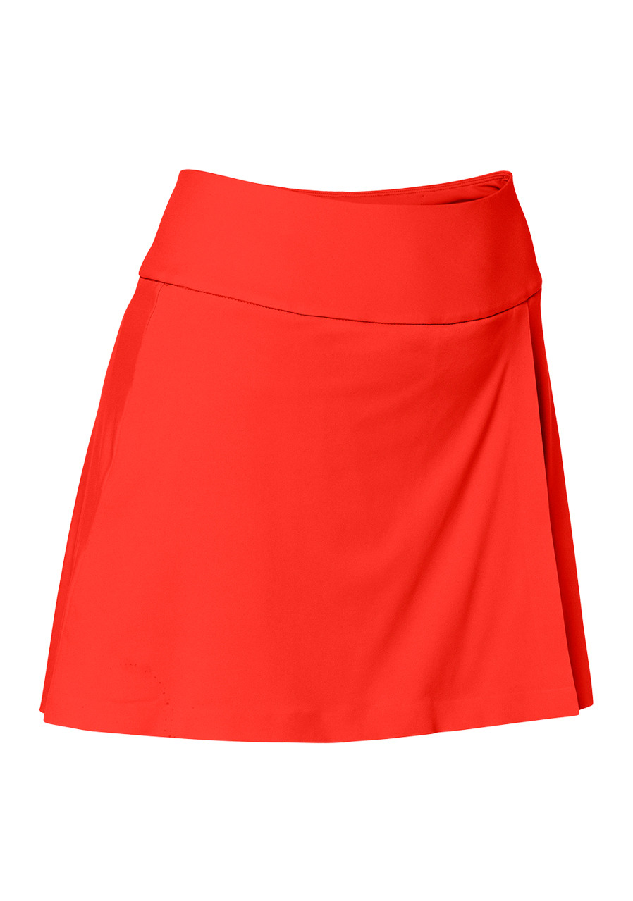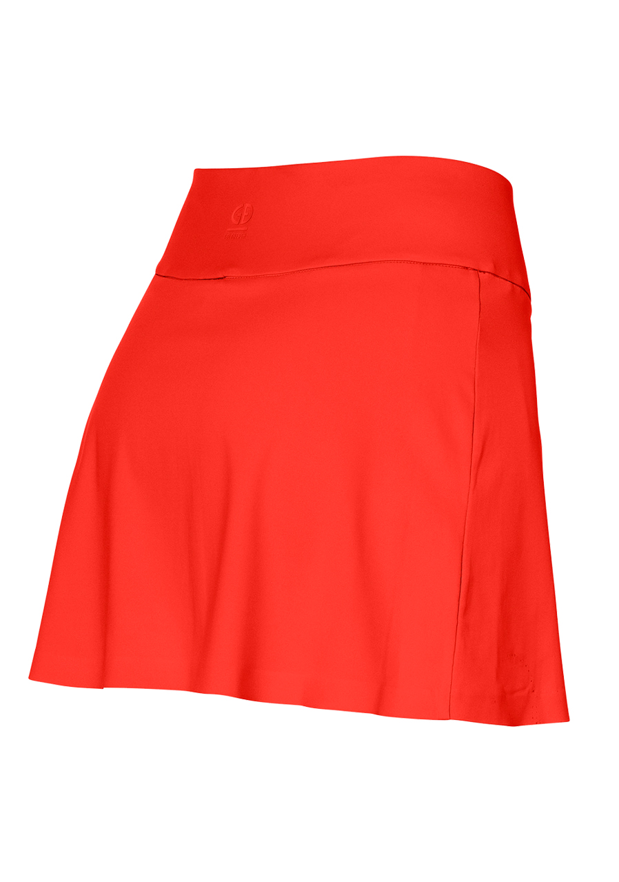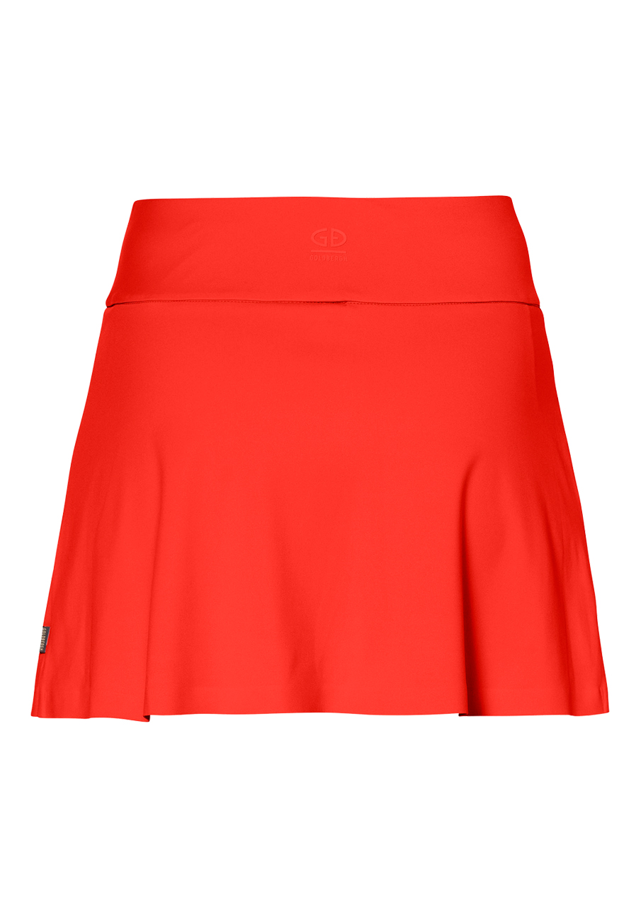Czerwona spódnica sportowa damska Goldbergh Anais. Materiał jest bardzo elastyczny i przewiewny, dzięki czemu świetnie sprawdzi się podczas uprawiania sportu. Spódnica nadaje się na grę w tenisa lub golfa, można ją również założyć na miasto. Odpowiednie dla kobiet, które lubią być aktywne i chcą czuć się komfortowo. Wewnętrzne, elastyczne spodenki zapewniają bezpieczeństwo i mają dwie kieszenie boczne.