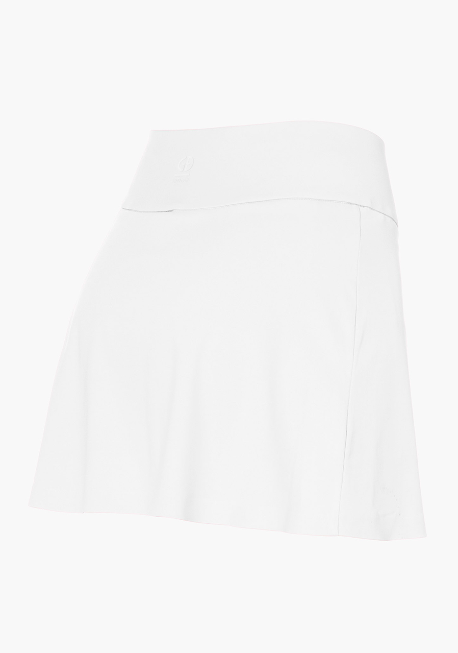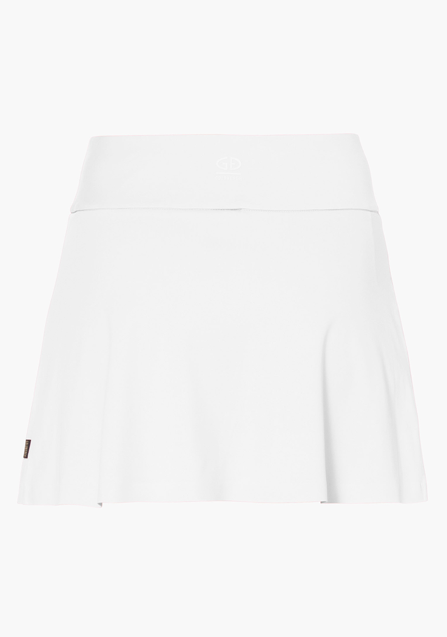 Gdy wydajność spotyka się z elegancją. Biała spódnica damska Goldbergh Anais łączy w sobie sportowy charakter i wyrafinowany styl. Lekki, elastyczny i oddychający materiał porusza się razem z Tobą, niezależnie od tego, czy wybierasz się na kort tenisowy, pole golfowe, czy do miasta na kawę. Wewnętrzne elastyczne spodenki z kieszeniami gwarantują wygodę i pewność każdego kroku. Detale takie jak delikatne rozcięcie i złote logo z przodu i z tyłu dodają całemu wyglądowi odrobinę luksusu. Idealny element garderoby dla nowoczesnej kobiety, która kocha ruch, ale nigdy nie idzie na kompromis w kwestii stylu.