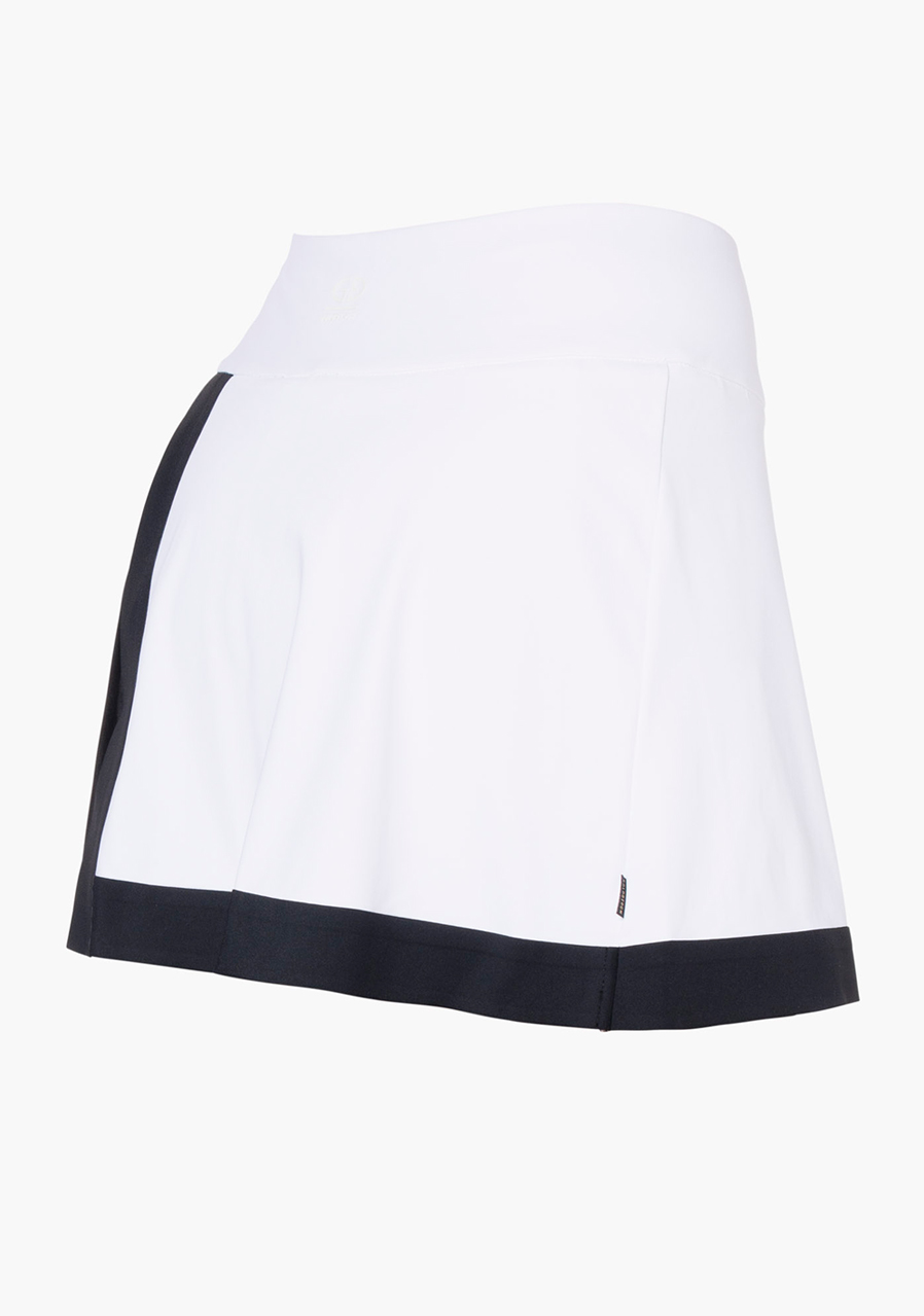 Spódnica damska Goldbergh Axelle to idealny dodatek do uprawiania sportów. Zaprojektowano ją tak, abyś czuła się komfortowo podczas uprawiania sportu, a jednocześnie wyglądała stylowo. Spódnica zewnętrzna ma wygodny krój z plisowanym panelem bocznym, co nadaje spódnicy ponadczasowy i dynamiczny wygląd. Bezpieczeństwo i wygodę zapewnią również wewnętrzne, dopasowane spodenki z gumką w pasie, która dodatkowo zapobiega przesuwaniu się spódnicy. Drobne przedmioty można ukryć w praktycznych kieszeniach. Dzięki zastosowaniu wysokiej jakości materiału, spódnica jest oddychająca, szybko schnie, a także pochłania zapachy, co docenisz podczas intensywnych treningów.