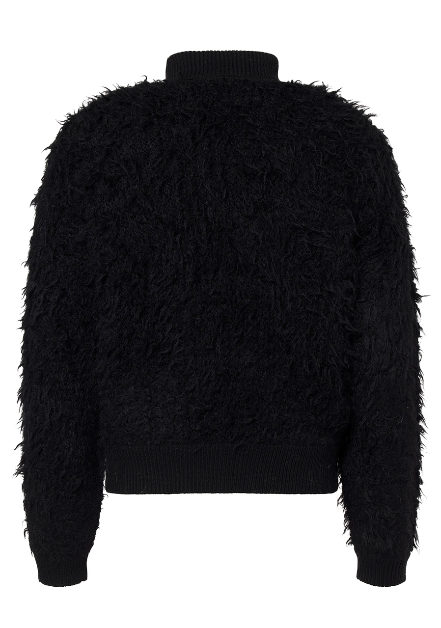 Parametry: Materiał: 87% alpaka, 13% poliester Długość: 55 cm (mierzone od środka pleców, rozmiar M) Krój: oversize fit Detale: proste rękawy, składany prążkowany kołnierz, metalowa naszywka na rękawie, tkana metka na boku Zalecenie dotyczące rozmiaru: odpowiada standardowemu rozmiarowi, oversize fit