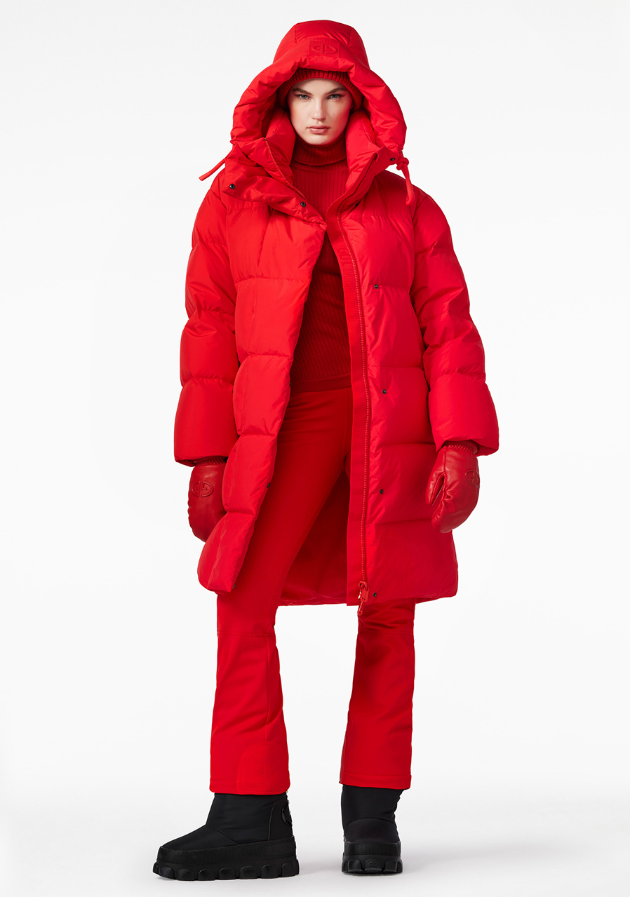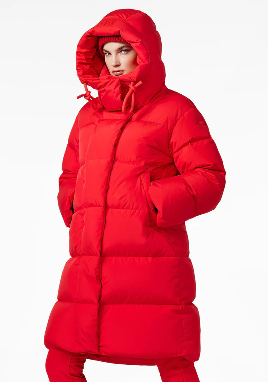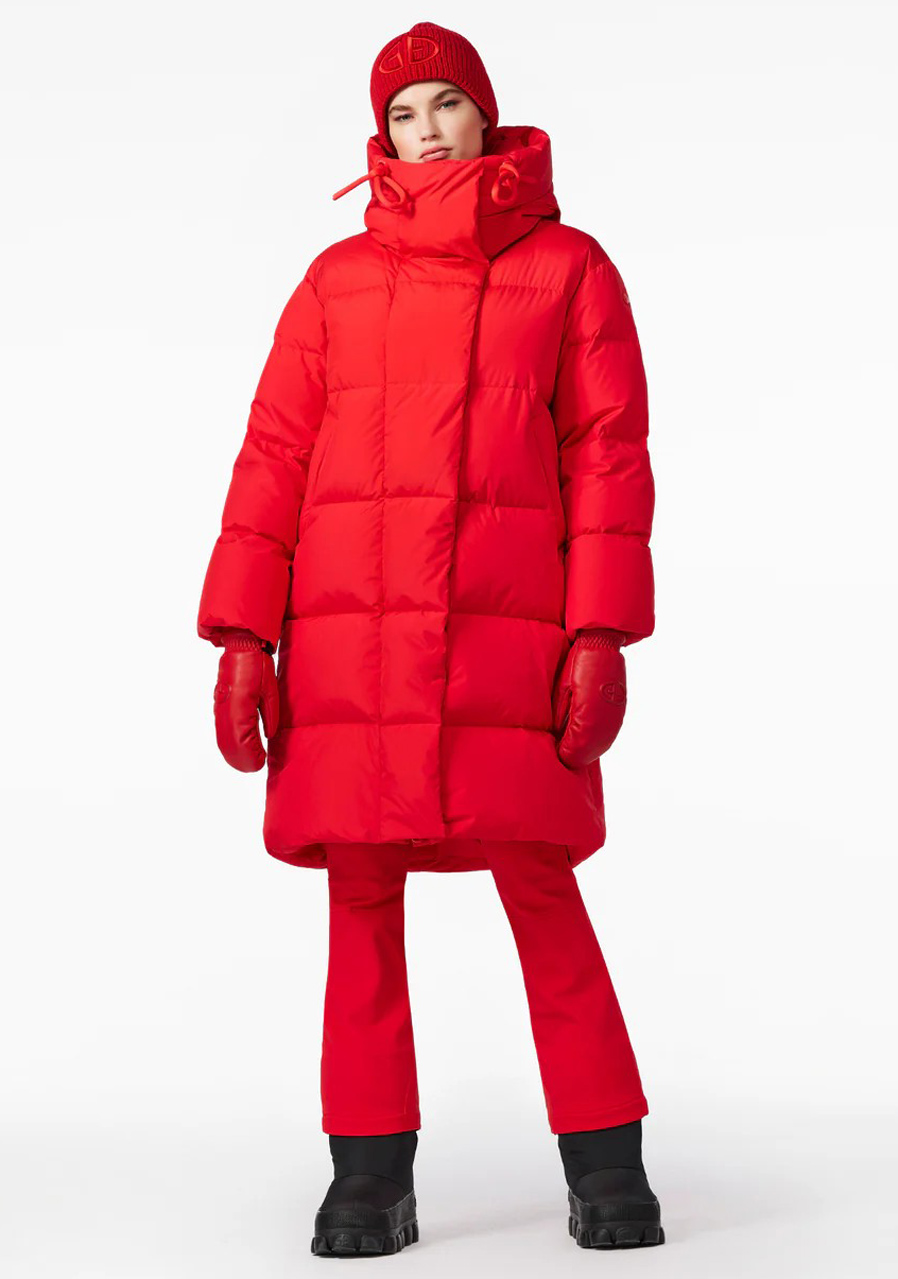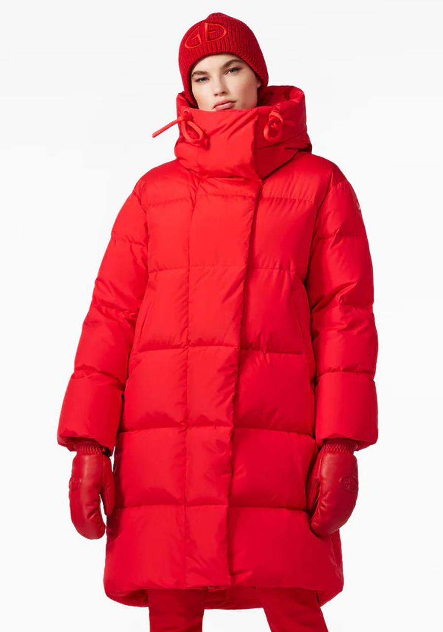 Goldbergh Chaleur Jacket w czerwonym kolorze to luksusowy puchowy płaszcz idealny na zimowe aktywności rekreacyjne i sportowe. Płaszcz ma luźny krój, co zapewnia wygodę i możliwość noszenia warstw. Wyposażony jest w dwie kieszenie zewnętrzne, dwie kieszenie wewnętrzne oraz kieszeń na rękawie na skipass. Ma stały kaptur, dzianinowe mankiety wewnątrz rękawów dla lepszej ochrony przed zimnem oraz stylowy wewnętrzny pasek do noszenia płaszcza na ramieniu.