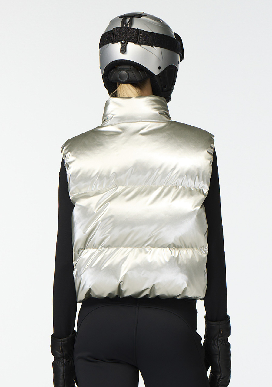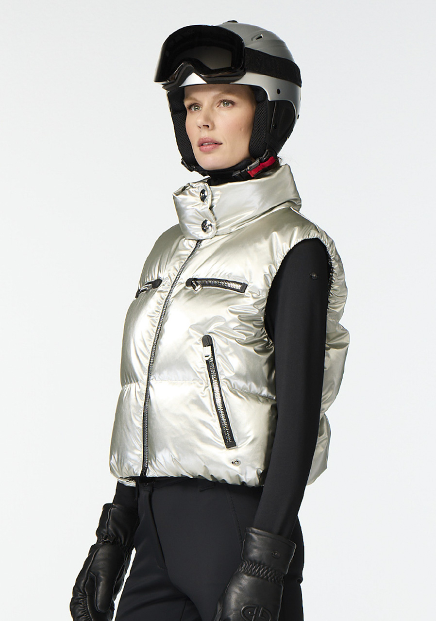 Ta damska kamizelka narciarska o wygodnym kroju regular fit jest idealna do warstwowego ubierania podczas zimowych sportów i aktywności rekreacyjnych. Podszewka jest częściowo wykonana z materiałów z recyklingu i posiada właściwości przeciwdziałające powstawaniu nieprzyjemnego zapachu, co zapewnia dłuższą świeżość. Wypełnienie puchowe z certyfikatem RDS (Responsible Down Standard) gwarantuje doskonałą izolację cieplną przy zachowaniu niskiej wagi. Kamizelka wyposażona jest w cztery zewnętrzne kieszenie oraz dwie wewnętrzne, które umożliwiają bezpieczne przechowywanie niezbędnych rzeczy. Odpinany pas śniegowy zapewnia dodatkową ochronę przed przedostawaniem się śniegu. Krój odpowiada standardowym rozmiarom, dlatego zalecamy wybór swojego zwykłego rozmiaru.