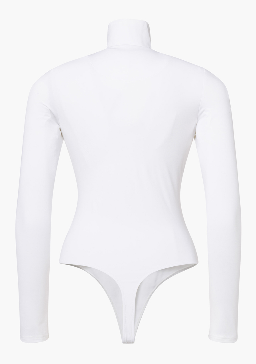 To body w fasonie slim fit łączy nowoczesny design z wysoką funkcjonalnością. Materiał powerstretch interlock z miękkim, szczotkowanym wnętrzem zapewnia komfort i swobodę ruchów. Przedni zamek ½ i wąska stójka umożliwiają eleganckie i praktyczne zapięcie, natomiast regulowane zapięcie w kroku zapewnia idealne dopasowanie. Metalowa etykieta na górnym rękawie podkreśla premium wygląd.