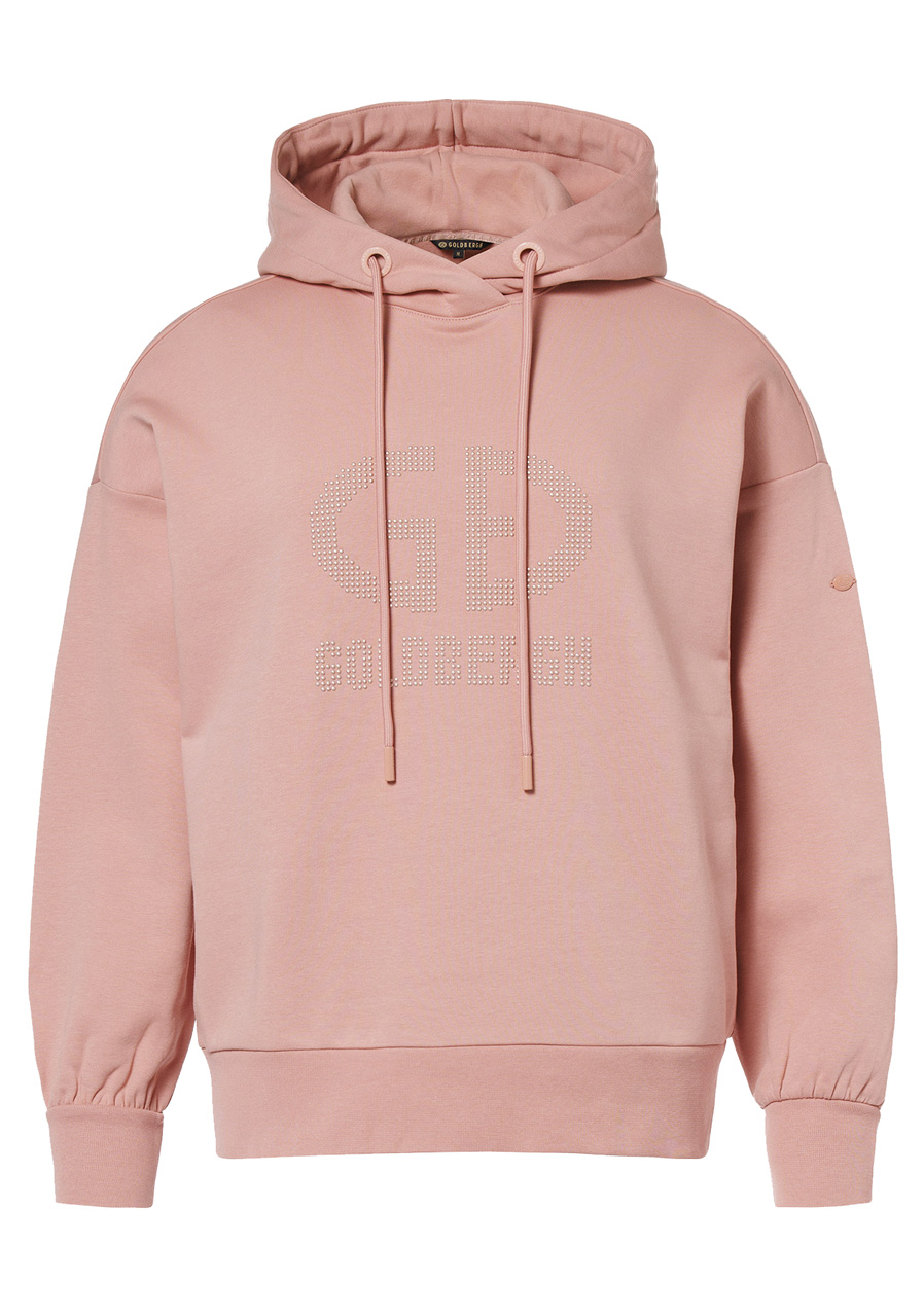 Ta luźna bluza wykonana z miękkiego, drapanego polaru zapewnia komfort dzięki naturalnej bawełnie organicznej oraz elastanowi, który dodaje lekkiej elastyczności. Podwójny kaptur z metalowymi zakończeniami sznurków nadaje sportowej elegancji i jednocześnie chroni przed chłodem. Delikatny nadruk logo Goldbergh w formie ćwieków na piersi oraz tkana metka na boku podkreślają ekskluzywny charakter bluzy. Bluza doskonale komponuje się ze spodniami dresowymi Delfina, tworząc kompletny, casualowy look.