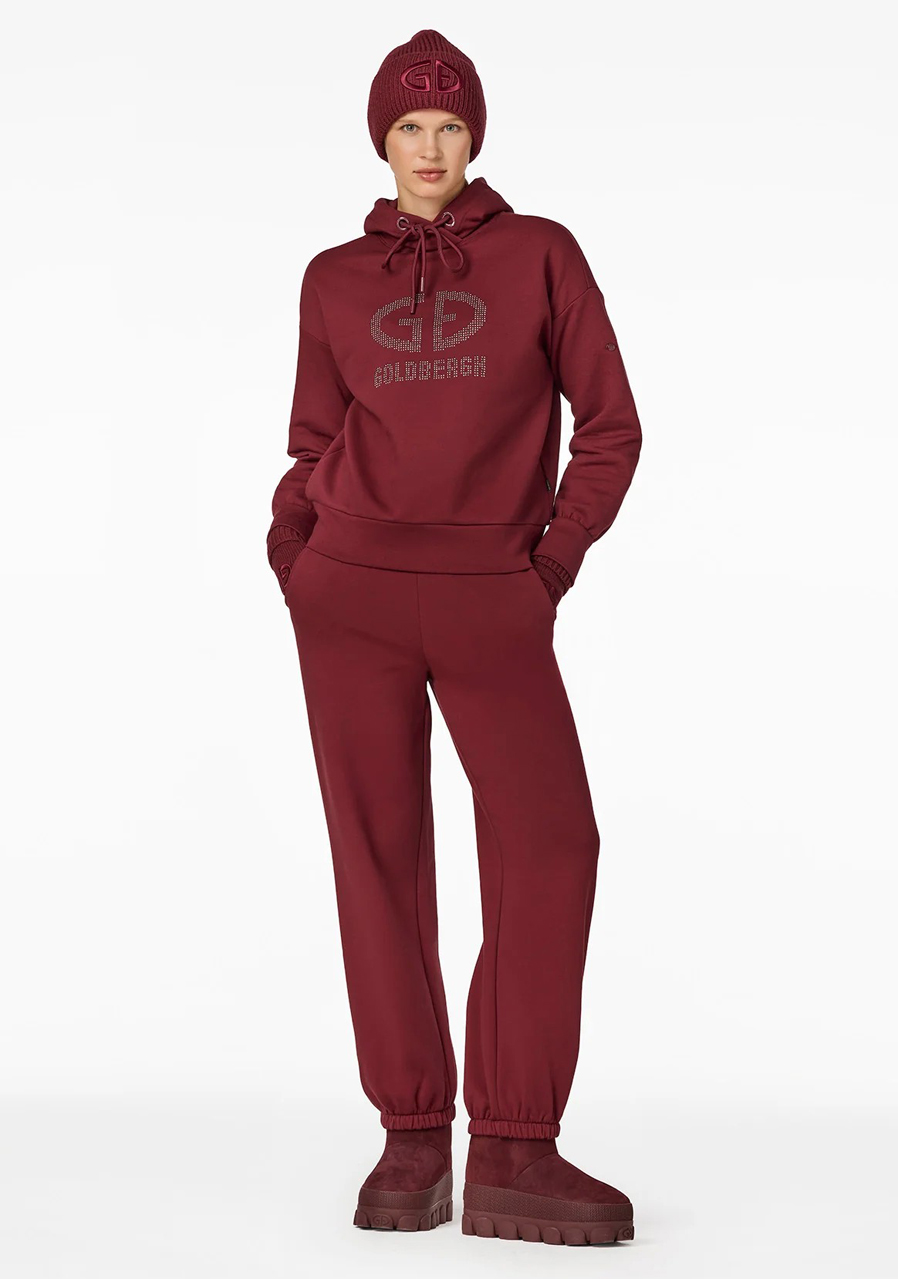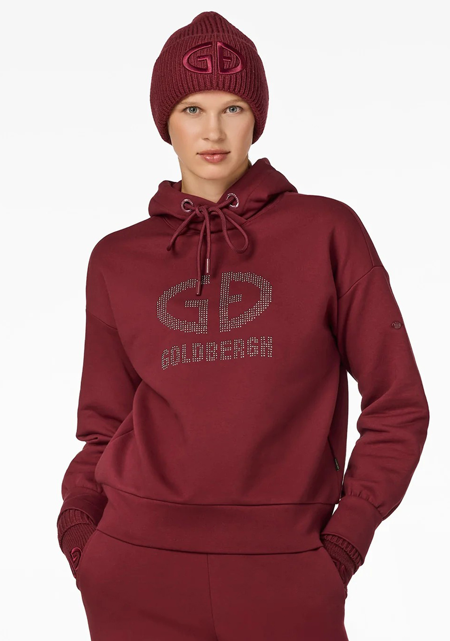 Ta luźna bluza wykonana z miękkiego, drapanego polaru zapewnia komfort dzięki naturalnej bawełnie organicznej oraz elastanowi, który dodaje lekkiej elastyczności. Podwójny kaptur z metalowymi zakończeniami sznurków nadaje sportowej elegancji i jednocześnie chroni przed chłodem. Delikatny nadruk logo Goldbergh w formie ćwieków na piersi oraz tkana metka na boku podkreślają ekskluzywny charakter bluzy. Bluza doskonale komponuje się ze spodniami dresowymi Delfina, tworząc kompletny, casualowy look.