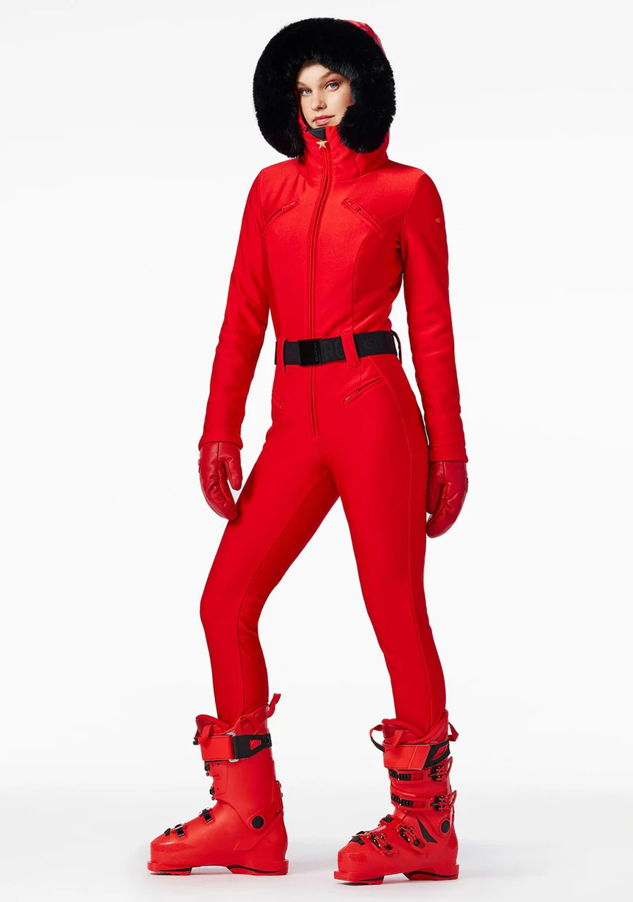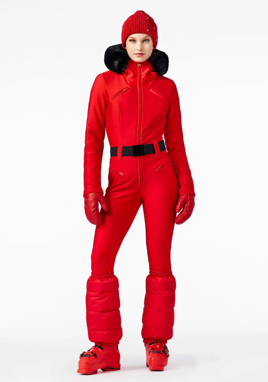 Goldbergh Glisser Faux Border Ski Suit v červené barvě je stylová lyžařská kombinéza, která kombinuje sofistikovaný design s vysokou funkčností. Tento oblek je ideální volbou pro ženy, které chtějí na sjezdovkách vypadat skvěle a zároveň se cítit pohodlně a chráněné. Kombinéza je vyrobena z voděodolných a prodyšných materiálů s technologií Powerstretch, které zajistí maximální pohodlí i v nepříznivém počasí, a je vybavena speciální anti-odor úpravou. Integrovaná izolace vás udrží v teple i při nízkých teplotách, takže se budete cítit komfortně po celý den na horách. Kombinéza má dostatek kapes (šest vnějších, dvě vnitřní, kapsa na skipass) na zip pro bezpečné uložení drobných věcí jako je telefon, klíče nebo skipas. Dále disponuje elastickým opaskem, zipy na rukávech, gumičkami na nohavicích pro snadnější oblékání a odnímatelnými sněhovými manžetami. Tato kombinéza ve slim fit střihu je nejen funkční, ale také mimořádně stylová, ideální pro ty, kteří ocení luxusní módní kousky i při zimních sportech. Parametry: Vnější materiál: 80% polyamid, 20% elastan; umělá kožešina - 100% polyester Vnitřní materiál: první - 86% polyamid, 14% elastan; druhý - 100% polyamid Výplň: první - 90/10 kachní peří (90% prachové peří, 10% peří); druhá - 100% polyester Primaloft výplň Vodní sloupec: 10 000 mm Prodyšnost: 5 000 g/m²/24h