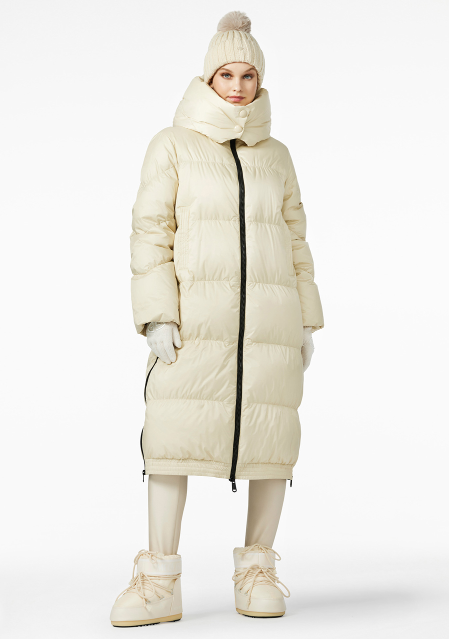 Goldbergh Keanu Jacket w kolorze szampańskim to stylowy i funkcjonalny płaszcz idealny na miejskie aktywności na świeżym powietrzu, szczególnie w chłodne, wietrzne i deszczowe dni. Ten długi pikowany płaszcz oferuje nie tylko doskonałą ochronę przed niekorzystnymi warunkami pogodowymi, ale także komfort dzięki najwyższej jakości materiałom. Luźniejszy krój zapewnia wygodę i możliwość noszenia warstw. Dwie praktyczne kieszenie zewnętrzne i jedna wewnętrzna na drobiazgi. Odpinany kaptur umożliwia dostosowanie wyglądu w zależności od potrzeb. Długość płaszcza sięga do połowy uda (115 cm w rozmiarze 38), co zapewnia lepszą ochronę przed zimnem. Ten model to doskonały wybór dla osób poszukujących połączenia elegancji i wysokiej funkcjonalności w zimowych miesiącach.