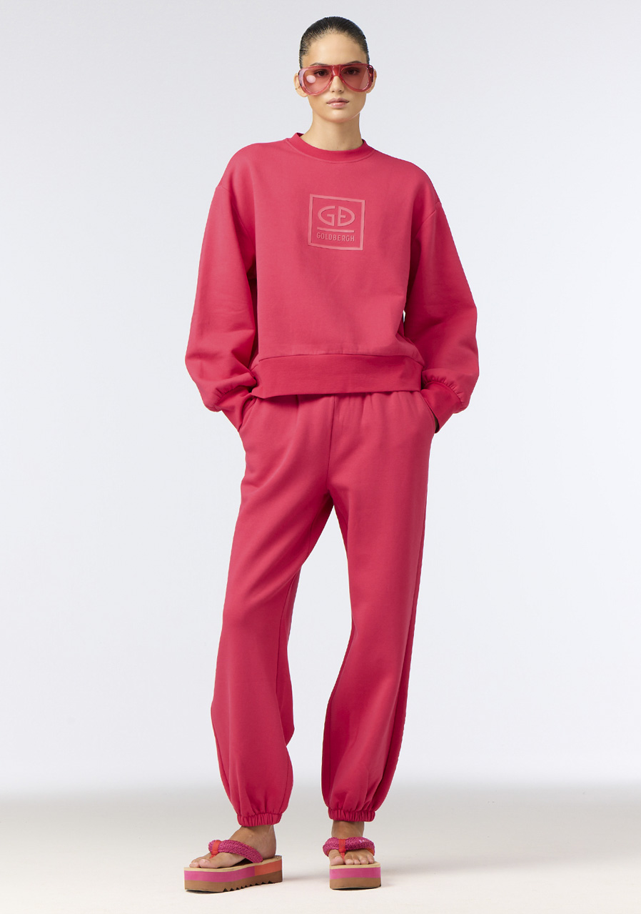 Damskie teplaki Goldbergh Lounger to synonim komfortu i stylu. Luksusowy, miękki materiał jest przyjemny w dotyku, a luźny krój zapewnia swobodę ruchu – zarówno w mieście, w podróży, jak i podczas odpoczynku w domu. Długi, szeroki sznurek w pasie pozwala na regulację według własnych potrzeb, a delikatna kokardka na końcu dodaje eleganckiego akcentu. Elastyczne mankiety utrzymują spodnie na miejscu, zapewniając wygodny krój.