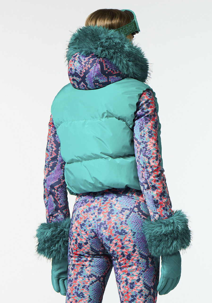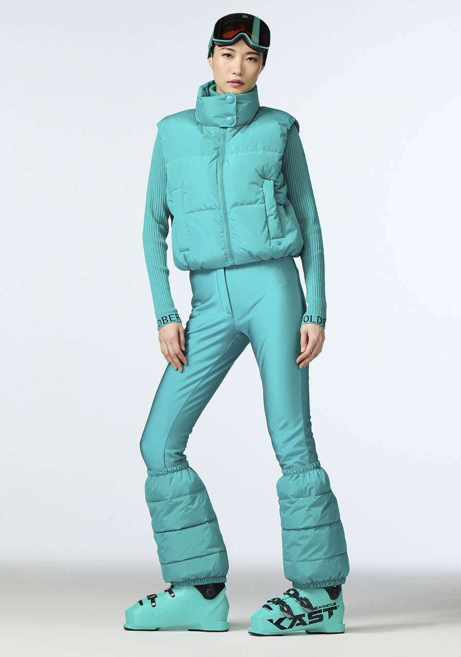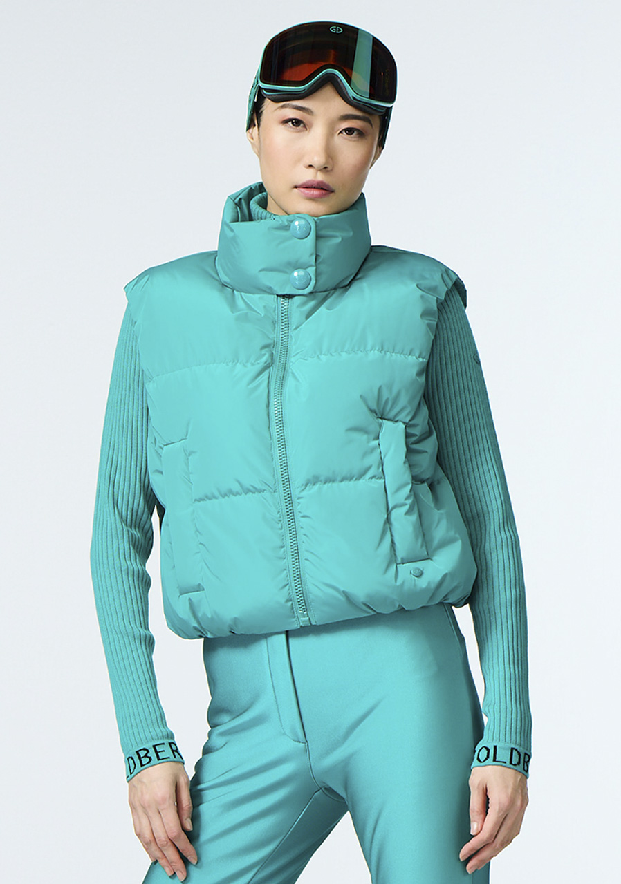 Ta damska kamizelka narciarska o wygodnym kroju regular fit wykonana jest z recyklingowanej tkaniny zewnętrznej, co czyni ją ekologicznym wyborem. Podszewka jest częściowo wykonana z materiału z recyklingu i posiada właściwości zapobiegające powstawaniu nieprzyjemnego zapachu dla lepszego komfortu. Wypełnienie stanowi puch z certyfikatem RDS (Responsible Down Standard), który zapewnia ciepło i lekkość. Kamizelka posiada dwie zewnętrzne i dwie wewnętrzne kieszenie na praktyczne przechowywanie drobiazgów. Odpinany pas śniegowy gwarantuje ochronę przed przedostawaniem się śniegu. Krój odpowiada standardowym rozmiarom, zalecamy wybór swojego zwykłego rozmiaru.