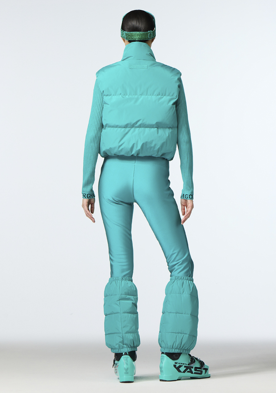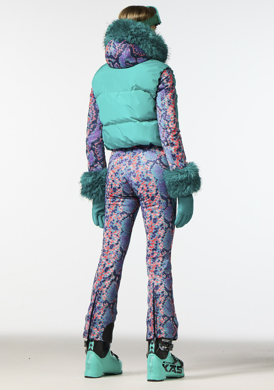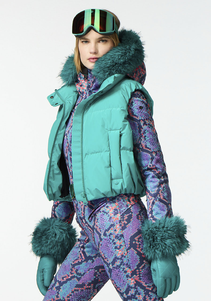 Ta damska kamizelka narciarska o wygodnym kroju regular fit wykonana jest z recyklingowanej tkaniny zewnętrznej, co czyni ją ekologicznym wyborem. Podszewka jest częściowo wykonana z materiału z recyklingu i posiada właściwości zapobiegające powstawaniu nieprzyjemnego zapachu dla lepszego komfortu. Wypełnienie stanowi puch z certyfikatem RDS (Responsible Down Standard), który zapewnia ciepło i lekkość. Kamizelka posiada dwie zewnętrzne i dwie wewnętrzne kieszenie na praktyczne przechowywanie drobiazgów. Odpinany pas śniegowy gwarantuje ochronę przed przedostawaniem się śniegu. Krój odpowiada standardowym rozmiarom, zalecamy wybór swojego zwykłego rozmiaru.