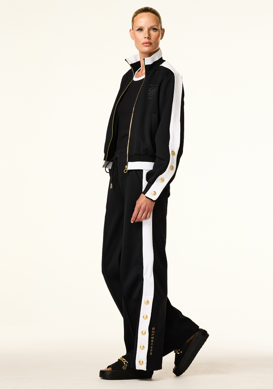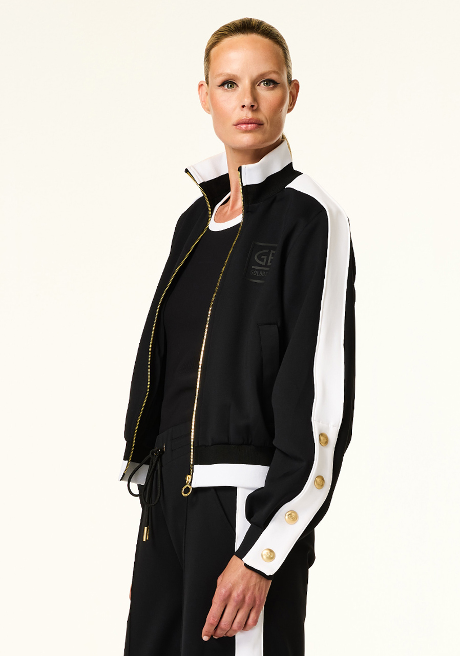 Stylowa, skrócona kurtka damska Goldbergh Monaco charakteryzuje się sportową elegancją i funkcjonalnością. Luksusowy design inspirowany letnim strojem w duchu Lazurowego Wybrzeża można doskonale łączyć np. ze spodniami Grimaud. Kurtka wykonana jest z elastycznego materiału dresowego, który zapewnia maksymalny komfort i swobodę ruchów. Klasyczny styl retro uzupełniają kontrastujące detale w postaci złotych guzików na rękawach i w talii przy obszyciu. Długi zamek błyskawiczny i kieszenie dodają kurtce praktyczności, dzięki czemu jest ona świetnym towarzyszem na co dzień zarówno w mieście, jak i na łonie natury.