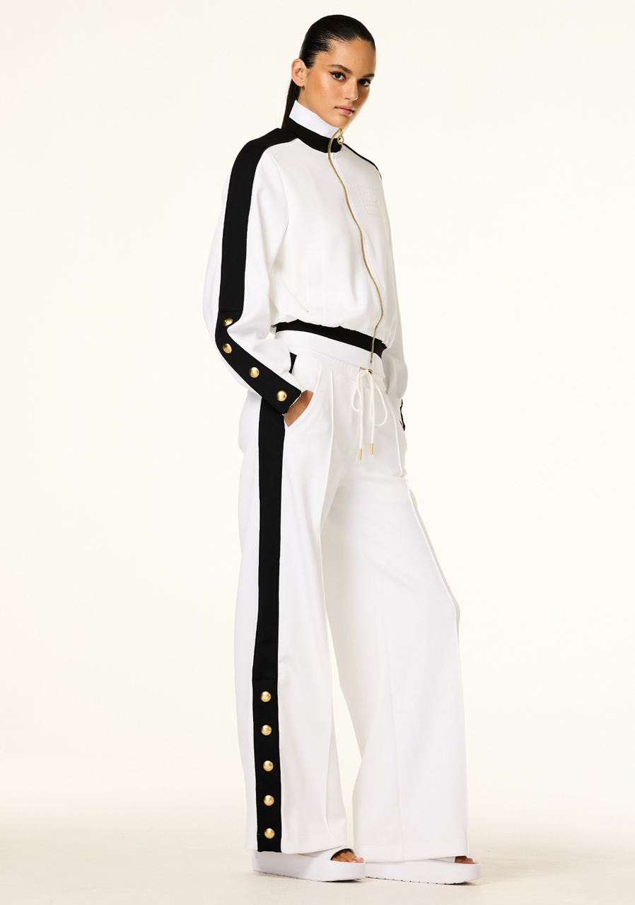 Stylowa, skrócona kurtka damska Goldbergh Monaco charakteryzuje się sportową elegancją i funkcjonalnością. Luksusowy design inspirowany letnim strojem w duchu Lazurowego Wybrzeża można doskonale łączyć np. ze spodniami Grimaud. Kurtka wykonana jest z elastycznego materiału dresowego, który zapewnia maksymalny komfort i swobodę ruchów. Klasyczny styl retro uzupełniają kontrastujące detale w postaci złotych guzików na rękawach i w talii przy obszyciu. Długi zamek błyskawiczny i kieszenie dodają kurtce praktyczności, dzięki czemu jest ona świetnym towarzyszem na co dzień zarówno w mieście, jak i na łonie natury.