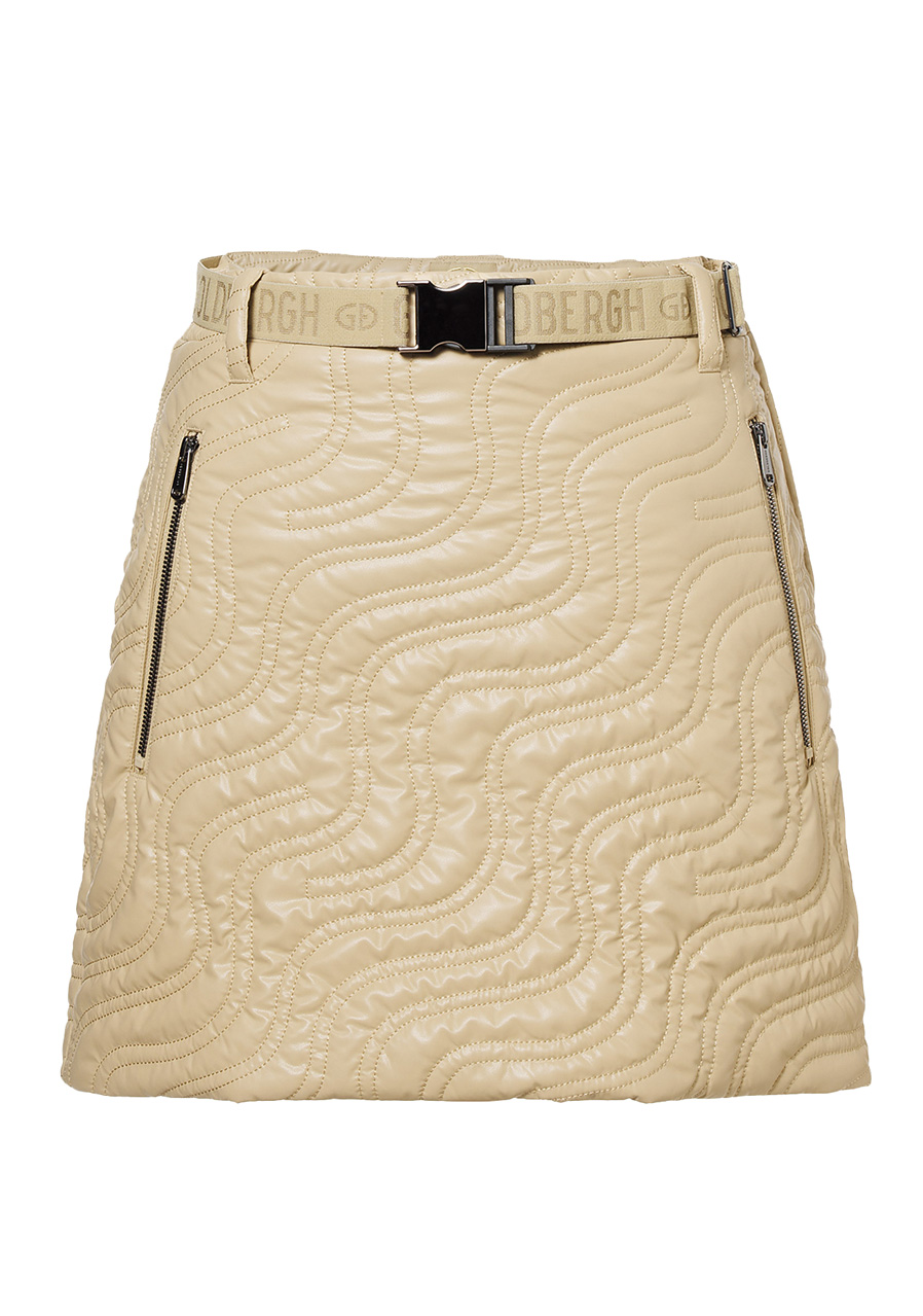 Ta spódnica w klasycznym kroju regular fit łączy wygodę z funkcjonalnością. Posiada dwie kieszenie oraz regulowany pasek, który pozwala podkreślić sylwetkę. Wykonana jest z materiałów częściowo pochodzących z recyklingu, co czyni ją wyborem przyjaznym dla środowiska. Dzięki wysokiej jakości wypełnieniu sprawdzi się także w chłodniejsze dni, zapewniając ciepło.