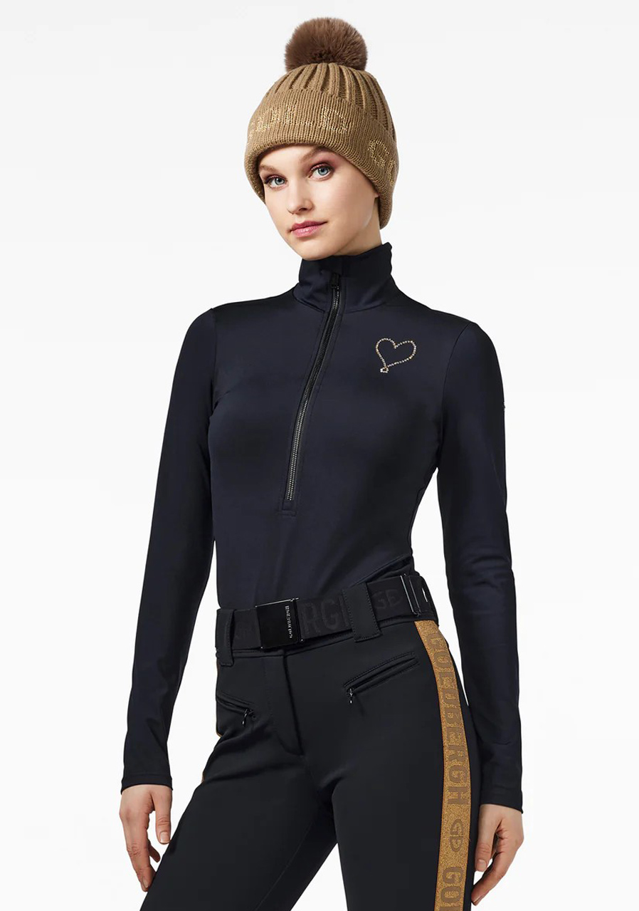 Goldbergh Ora Ski Body w kolorze czarnym to luksusowe body narciarskie zaprojektowane dla kobiet, które chcą wyróżnić się nie tylko stylem, ale także wydajnością na stoku. Ten elegancki model z wewnętrzną szczotkowaną warstwą oferuje dopasowany krój slim fit, który doskonale dopasowuje się do ciała, jednocześnie zapewniając maksymalną swobodę ruchów dzięki materiałowi powerstretch. Połączenie poliestru i elastanu gwarantuje wygodę i elastyczność, a specjalna obróbka tkaniny zapewnia szybkie schnięcie i oddychalność, co jest idealne do aktywności sportowych. Body wyposażone jest w zamek z przodu, wysoki kołnierz, a design uzupełnia logo marki z tyłu. Praktycznym detalem jest regulowane zapięcie w kroku. Materiał posiada również antybakteryjną powłokę eliminującą zapachy powstające podczas pocenia się. Ten model to doskonały wybór dla narciarek, które cenią sobie styl i wydajność.
