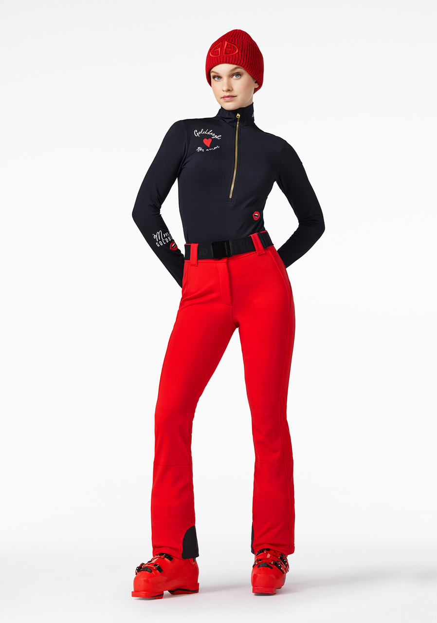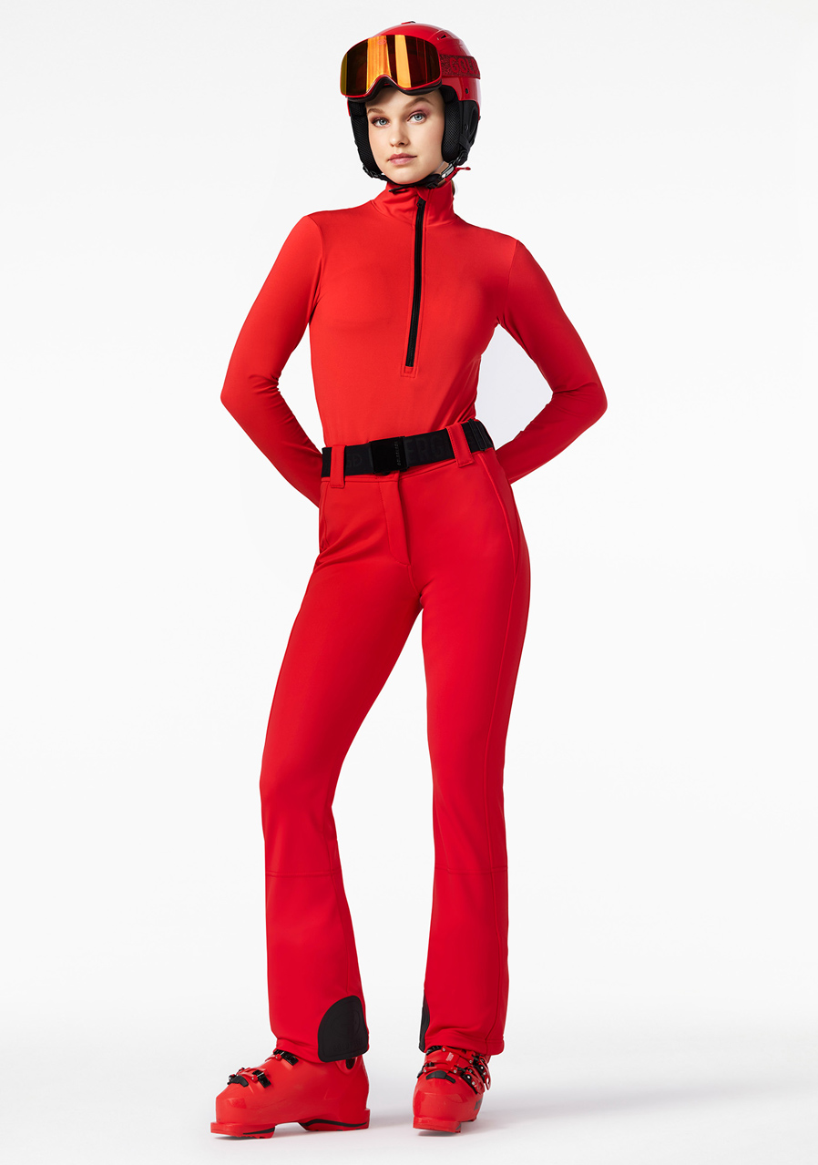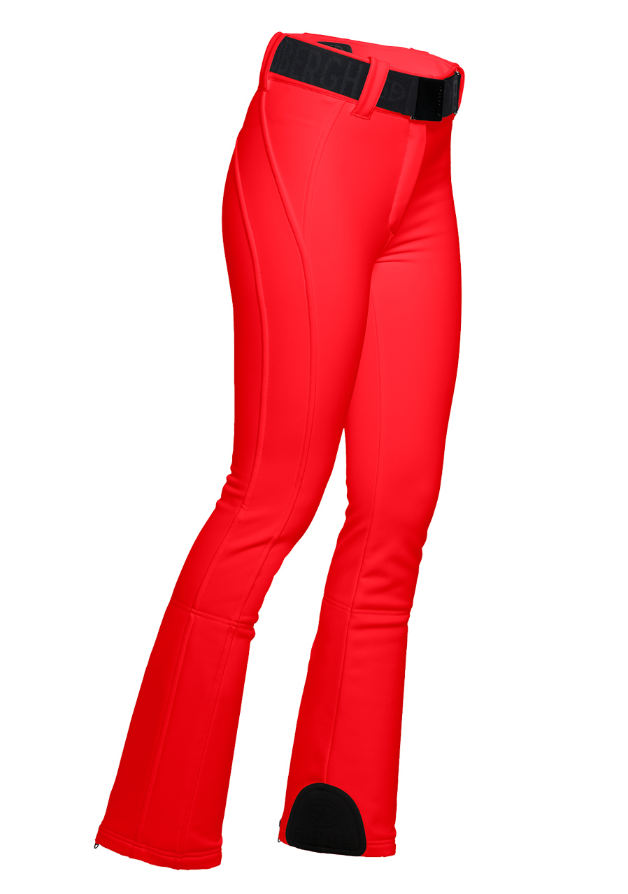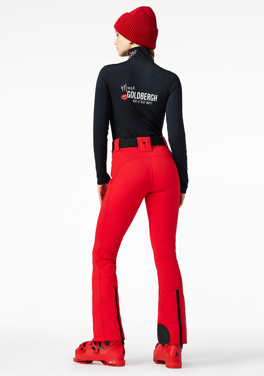 Spodnie narciarskie Goldbergh Pippa Ski Pants w czerwonym kolorze to doskonały wybór na zimowe sporty, takie jak narciarstwo zjazdowe czy snowboard. Trójwarstwowy materiał softshellowy (WB400 od Schoeller) z hydrofobową i wiatroszczelną powłoką zapewnia świetną elastyczność i swobodę ruchów. Wewnętrzna warstwa wykonana jest w 100% z poliamidu z podszyciem z polaru, co zapewnia dodatkowe ciepło i komfort. Spodnie mają dopasowany krój (slim fit), śnieżne mankiety i zamki z tyłu nogawek. Odpinany pasek zwiększa ich uniwersalność. Model idealny dla tych, którzy cenią sobie funkcjonalność i styl.