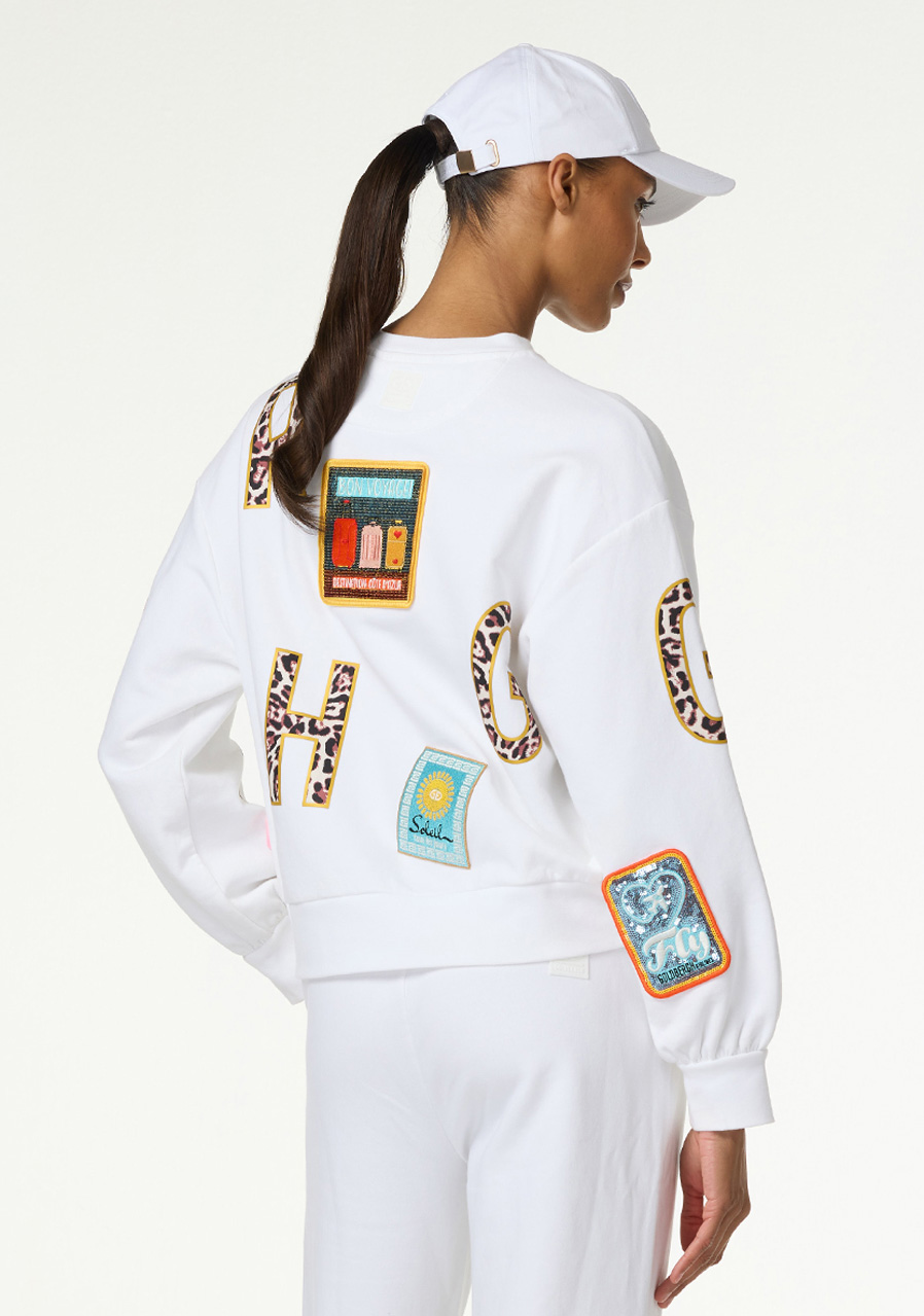 Swobodna damska bluza Goldbergh Piscine przyciągnie wzrok już na pierwszy rzut oka dzięki kolorowym naszywkom. Bluza ma luźny, oversize'owy krój, który uzupełnia miękki materiał ze szczotkowanym wnętrzem, gwarantujący wygodę i odpowiednie ciepło. Ściągacze przy dekolcie, przy mankietach i u dołu bluzy tworzą klasyczny krój bluzy. Każda kobieta lubiąca elegancję doceni charakterystyczny haft inspirowany Lazurowym Wybrzeżem. Nadruk litery Goldbergh w stylu jaruár sprawia, że model ten wyróżnia się na tle zwykłych bluz, które znasz.