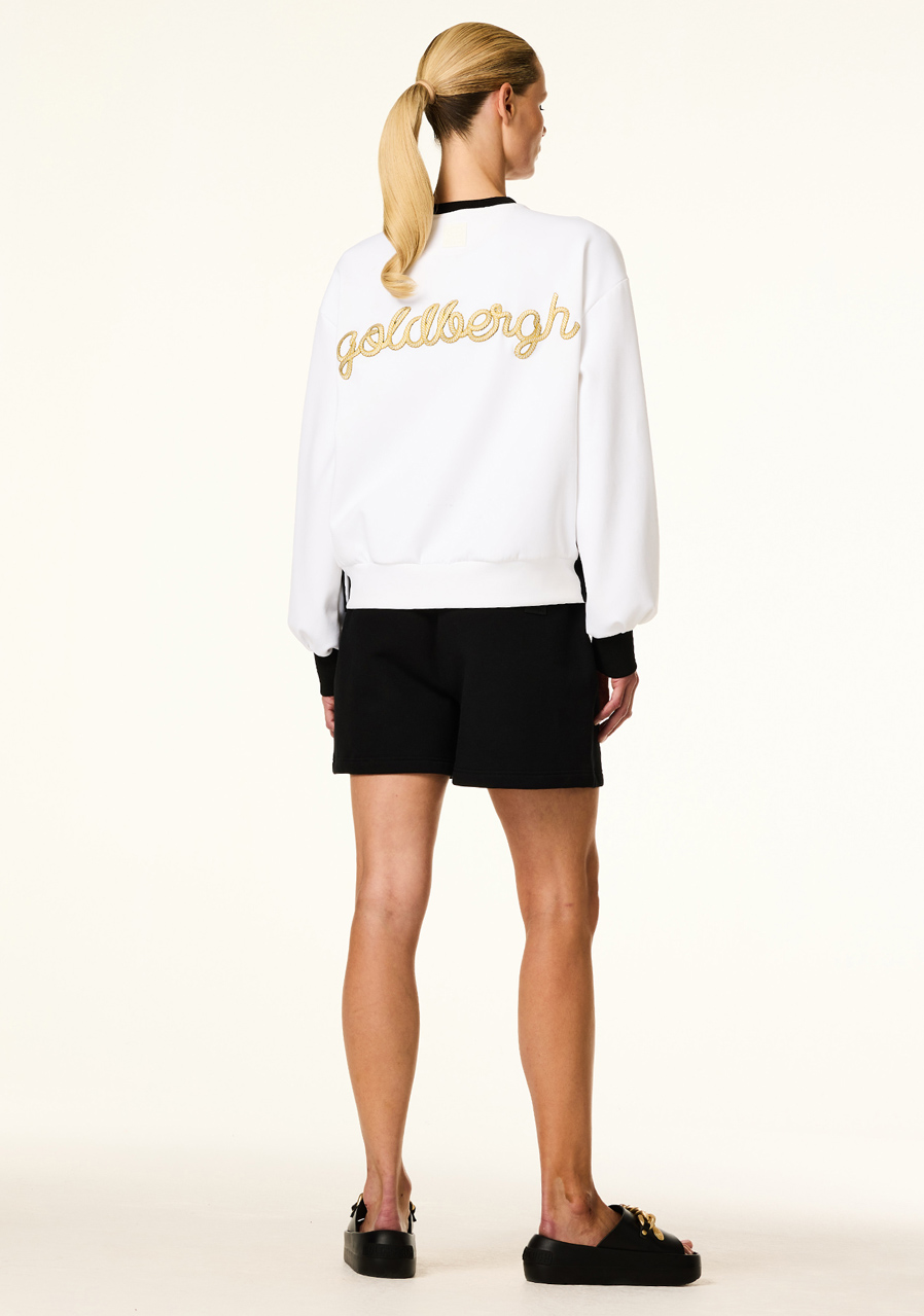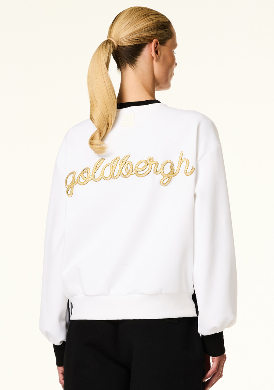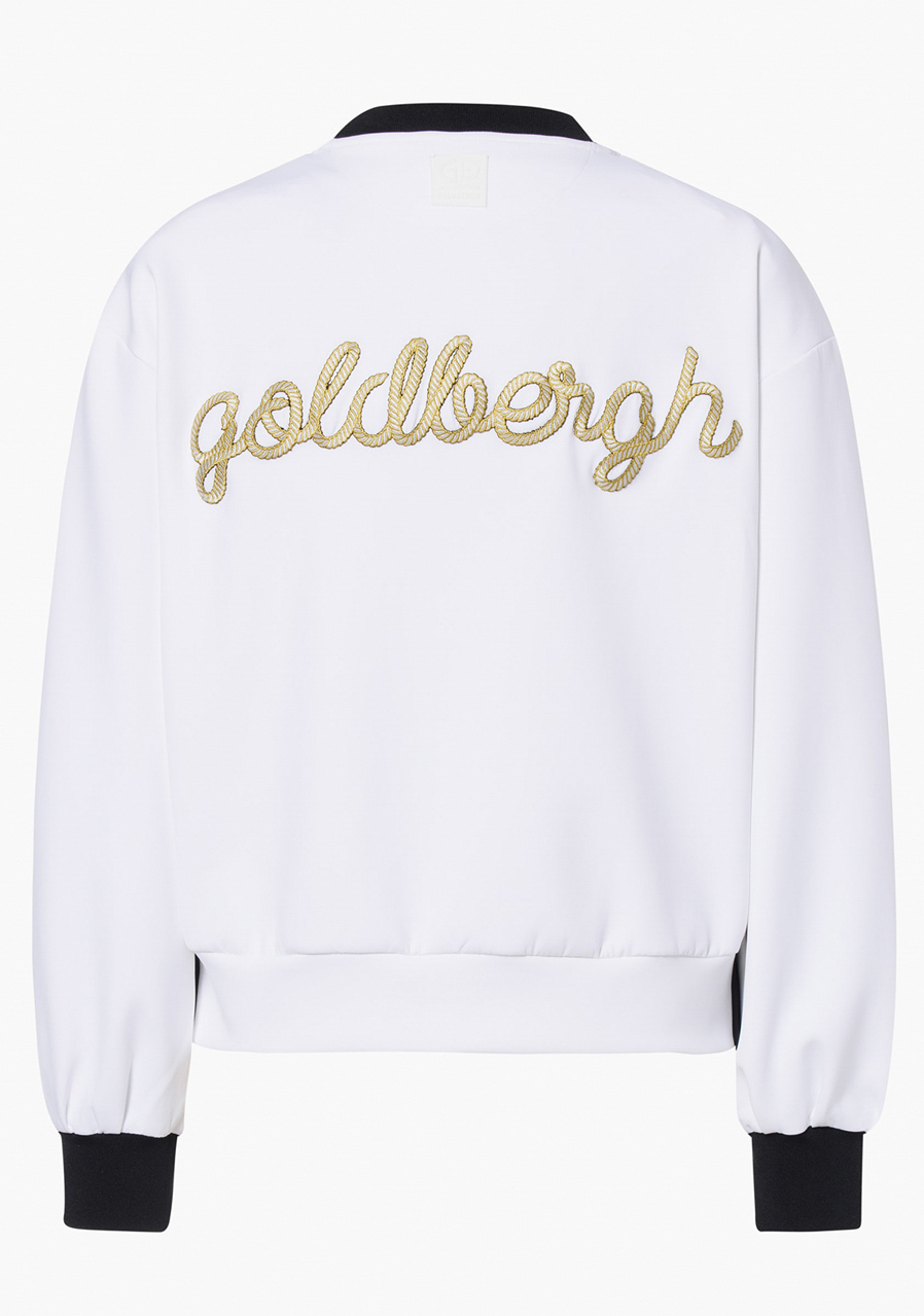 Damska bluza Goldbergh Port inspirowana jest tematyką marynistyczną i białymi plażami Lazurowego Wybrzeża. Dzięki zastosowaniu wysokiej jakości dzianiny Interlock bluza jest odporna na zapachy i ma konstrukcję zapewniającą maksymalny komfort noszenia. Luźny krój oraz elastyczne, ściągaczowe wykończenia rękawów i dekoltu nadają temu elementowi sportowego charakteru. Z przodu znajduje się haftowane i nadrukowane logo, które podkreśla jego wyjątkowy styl. Na odwrocie znajduje się złoty, ręcznie napisany napis. Złote napy po bokach oraz panele boczne umożliwiają regulację rozmiaru.