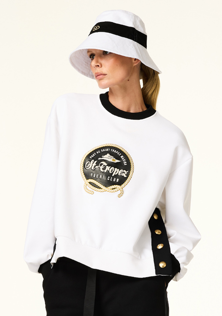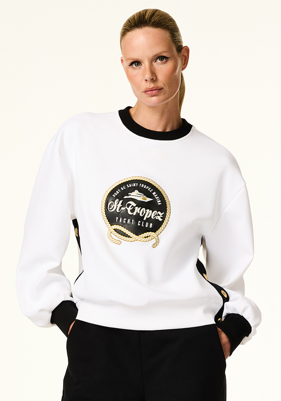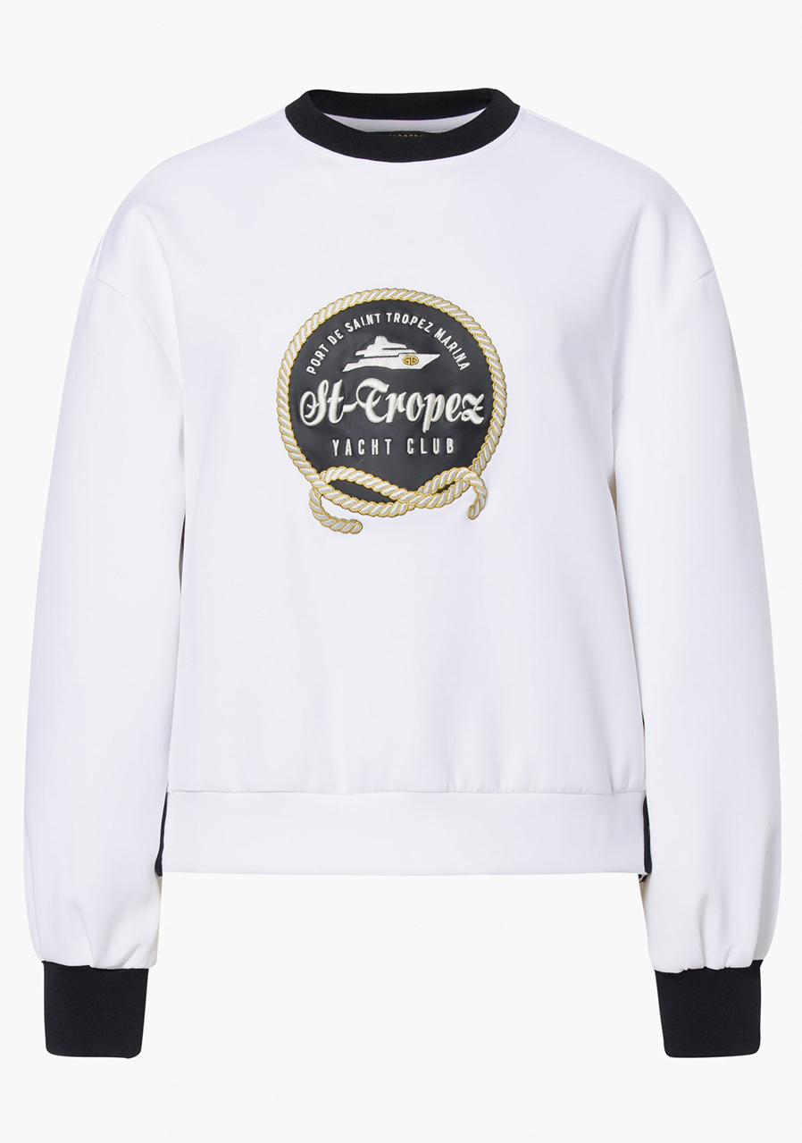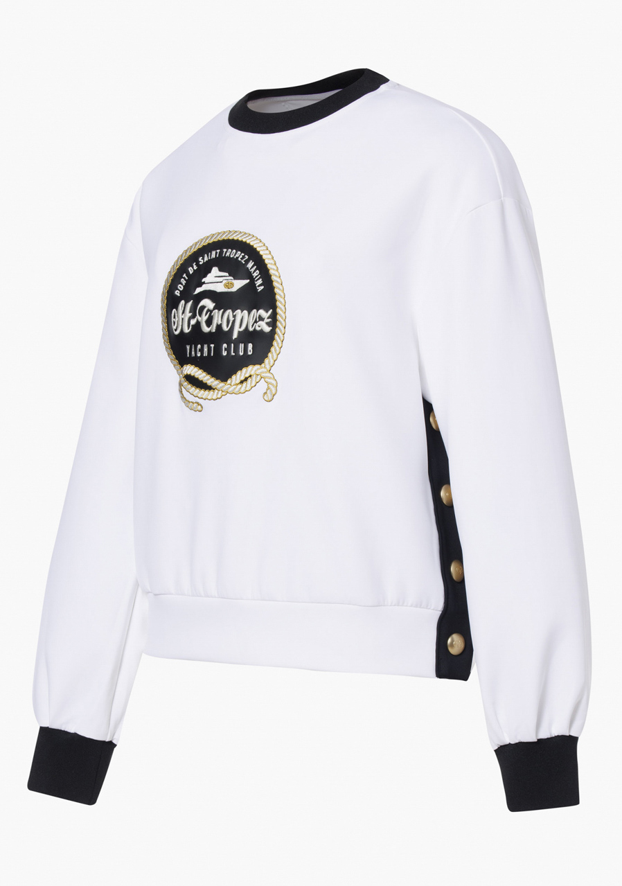 Damska bluza Goldbergh Port inspirowana jest tematyką marynistyczną i białymi plażami Lazurowego Wybrzeża. Dzięki zastosowaniu wysokiej jakości dzianiny Interlock bluza jest odporna na zapachy i ma konstrukcję zapewniającą maksymalny komfort noszenia. Luźny krój oraz elastyczne, ściągaczowe wykończenia rękawów i dekoltu nadają temu elementowi sportowego charakteru. Z przodu znajduje się haftowane i nadrukowane logo, które podkreśla jego wyjątkowy styl. Na odwrocie znajduje się złoty, ręcznie napisany napis. Złote napy po bokach oraz panele boczne umożliwiają regulację rozmiaru.