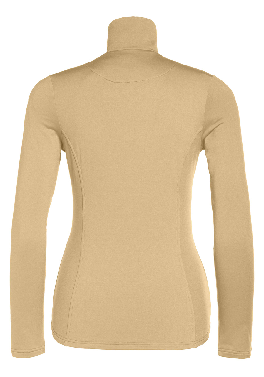 Parametry: Materiał: Jersey szczotkowany, stretch, odprowadzanie wilgoci, szybkoschnący i antybakteryjny Skład: 85% poliester z recyklingu, 15% elastan Krój: Slim fit, rozmiar odpowiada standardowej wielkości Dekolt: Wąski kołnierzyk stojący Zapinanie: Przedni zamek ½, wydłużony Rękawy: Długie Długość: 64 cm od środka pleców (rozmiar M) Design: Metalowa etykieta na lewym rękawie, dostępna w 11 kolorach