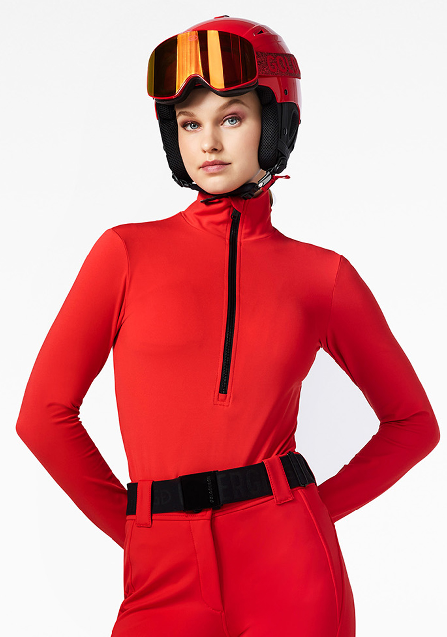 Goldbergh Serena Ski Pully v červené barvě je stylový a funkční lyžařský rolák, ideální pro sportovní aktivity v zimním období. Tento model je vyroben z pružného materiálu s Powerstretch technologií, který zajišťuje volnost pohybu a optimální přizpůsobení tělu. Díky rychleschnoucímu materiálu a prodyšnosti rolák zaručuje komfort i při náročných aktivitách. Antibakteriální technologie zabraňuje nepříjemným pachům, což snižuje potřebu častého praní. Rolák má měkkou česanou vnitřní stranu, která poskytuje teplo, a je vybaven polovičním zipem pro snadnou ventilaci. Je vyroben z ekologických materiálů, což jej činí nejen výkonným, ale i šetrným k životnímu prostředí. Slim fit střih a kovový štítek značky Goldbergh na rukávu dodávají roláku elegantní vzhled.
