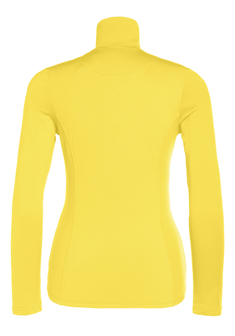 Parametry: Materiał: Jersey szczotkowany, stretch, odprowadzanie wilgoci, szybkoschnący i antybakteryjny Skład: 85% poliester z recyklingu, 15% elastan Krój: Slim fit, rozmiar odpowiada standardowej wielkości Dekolt: Wąski kołnierzyk stojący Zapinanie: Przedni zamek ½, wydłużony Rękawy: Długie Długość: 64 cm od środka pleców (rozmiar M) Design: Metalowa etykieta na lewym rękawie, dostępna w 11 kolorach