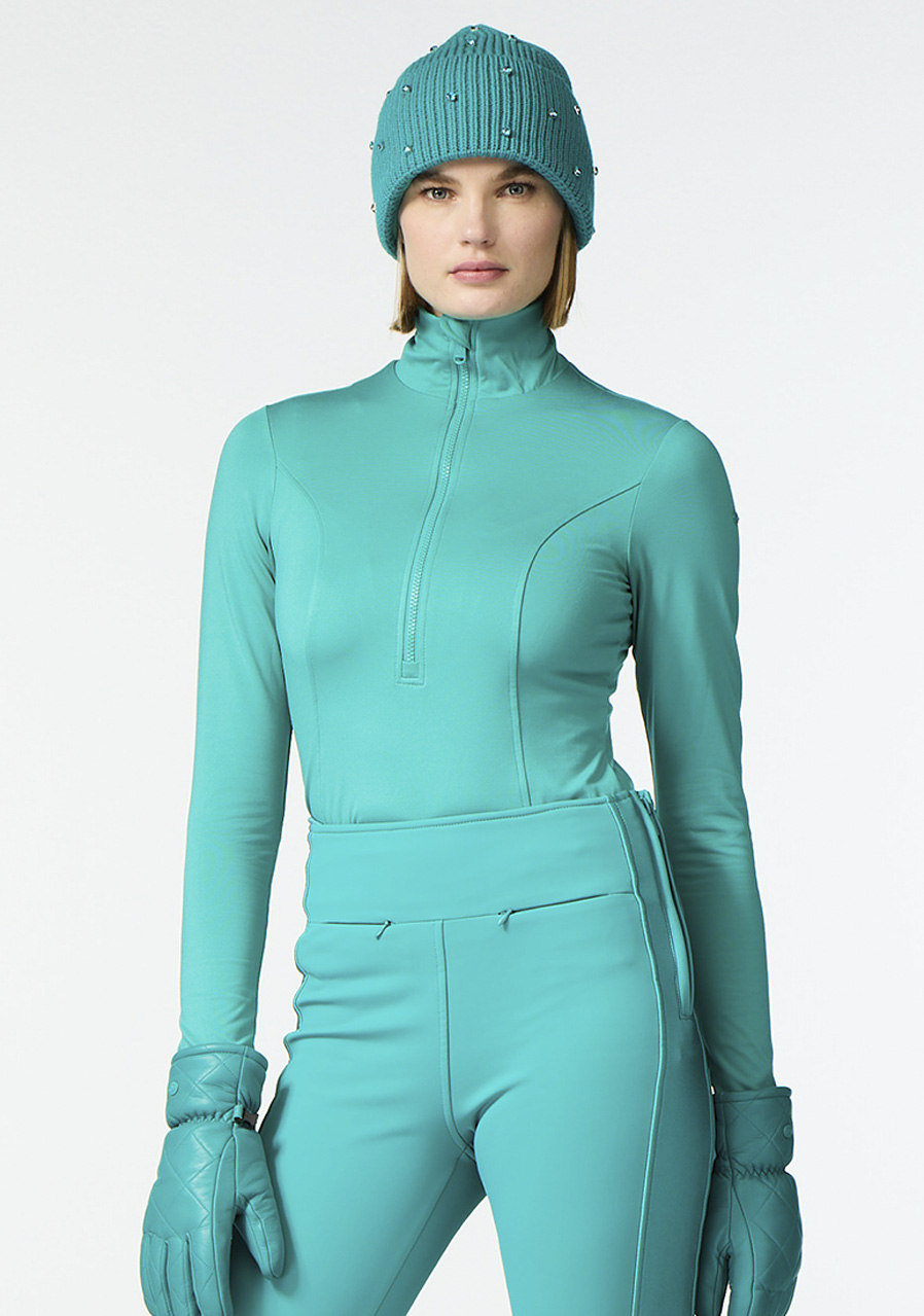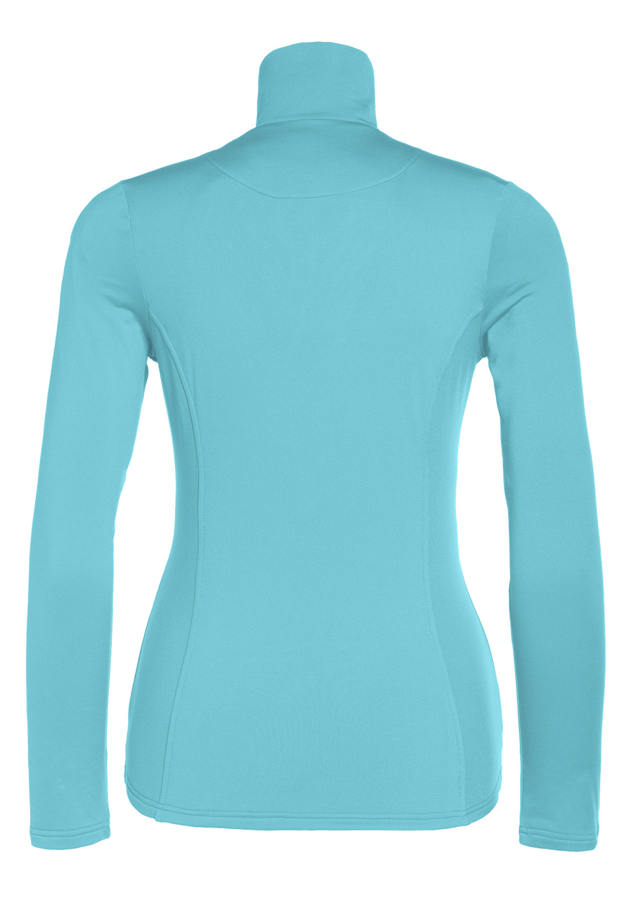 Parametry: Materiał: Jersey szczotkowany, stretch, odprowadzanie wilgoci, szybkoschnący i antybakteryjny Skład: 85% poliester z recyklingu, 15% elastan Krój: Slim fit, rozmiar odpowiada standardowej wielkości Dekolt: Wąski kołnierzyk stojący Zapinanie: Przedni zamek ½, wydłużony Rękawy: Długie Długość: 64 cm od środka pleców (rozmiar M) Design: Metalowa etykieta na lewym rękawie, dostępna w 11 kolorach