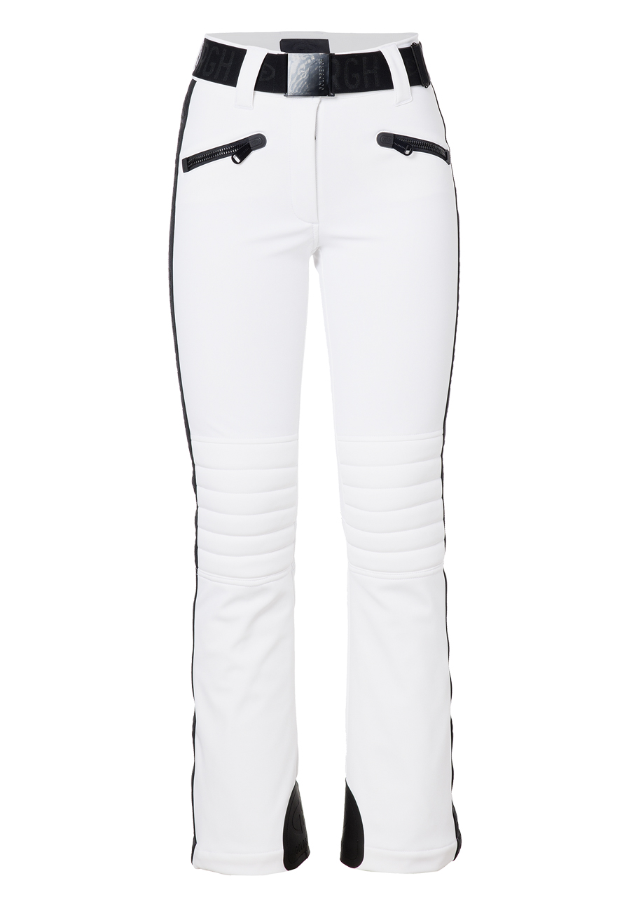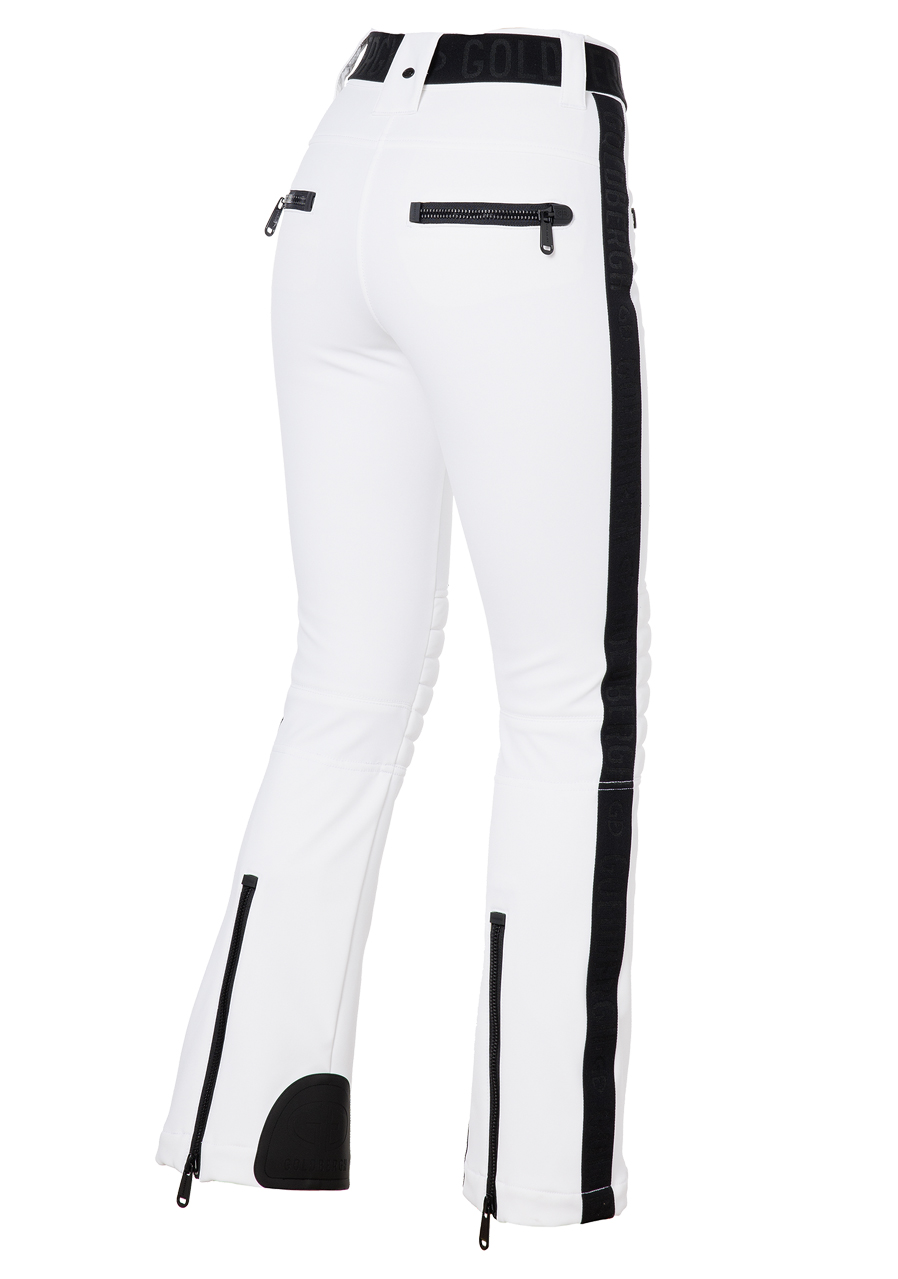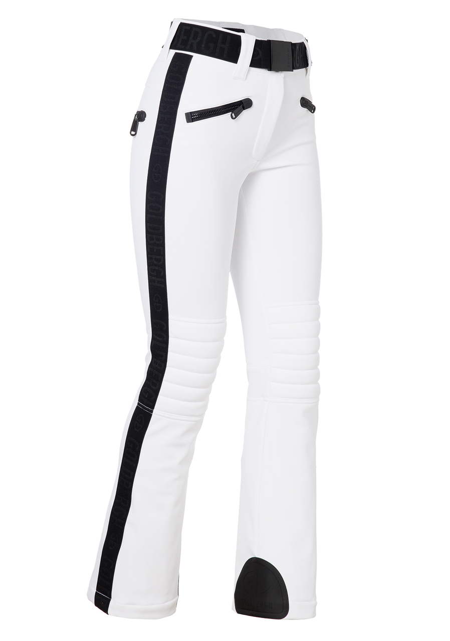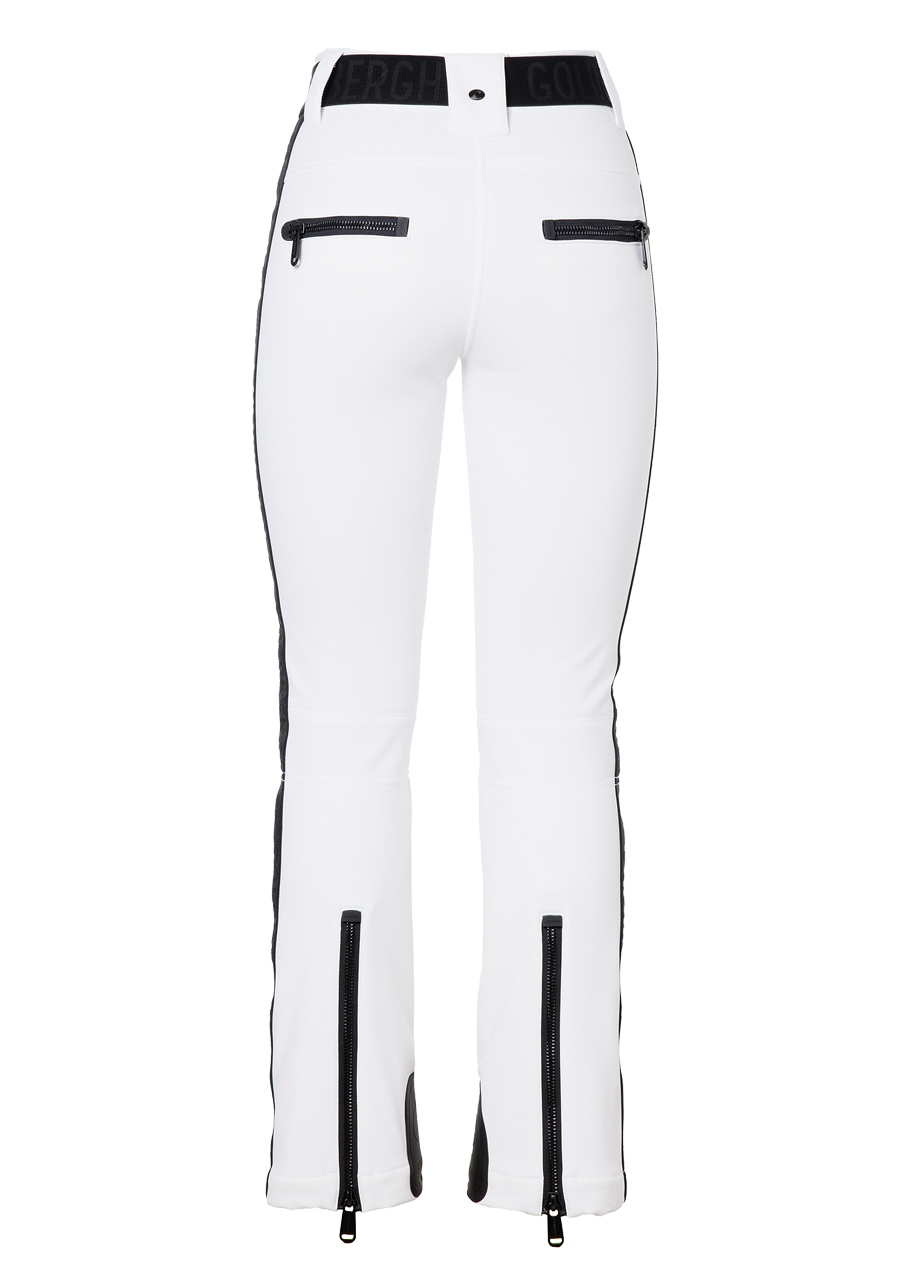 Te damskie spodnie narciarskie o nowoczesnym kroju slim fit oferują dużo miejsca na drobiazgi dzięki czterem kieszeniom na zamek. Elastyczny pas zapewnia wygodne dopasowanie, a wyściełane części w okolicy kolan gwarantują dodatkową ochronę i komfort. Zamki z tyłu nogawek ułatwiają zakładanie spodni przez buty. Dolna część wyposażona jest w ochraniacz przeciwśnieżny, który zapobiega przedostawaniu się śniegu. Elastyczna wstawka Goldbergh na bocznych szwach dodaje stylowego akcentu. Model dostępny jest także w dłuższej wersji GB016-75-254, która jest o 4 cm dłuższa. Spodnie mają standardowy krój, zalecamy wybór swojego zwykłego rozmiaru.