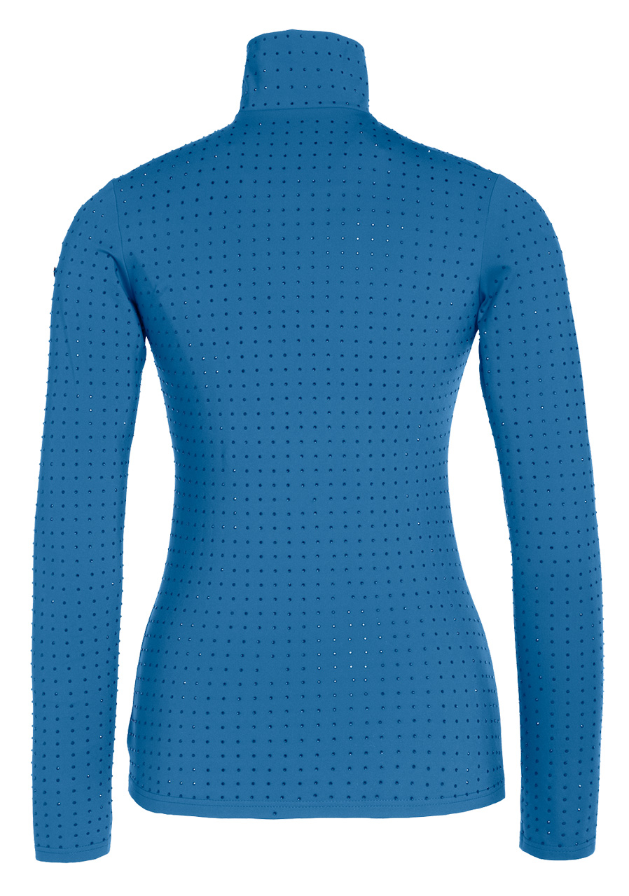 Goldbergh Spark Ski Pully w kolorze Deep Teal to stylowy i funkcjonalny sportowy golf, idealny na zimowe aktywności. Model wykonany jest z elastycznego materiału z technologią Powerstretch, co zapewnia komfort i swobodę ruchów. Wewnętrzna, lekko drapana strona tkaniny zwiększa komfort termiczny. Golf jest szybkoschnący, oddychający i posiada specjalną powłokę antybakteryjną, która zapobiega powstawaniu nieprzyjemnych zapachów. Na powierzchni znajdują się ozdobne kryształki, które nadają całości elegancki wygląd, a metalowa naszywka z logo na rękawie podkreśla jego prémiowy charakter. Fason slim fit z wysokim kołnierzem i długim zamkiem z przodu ułatwia zakładanie i dopasowanie. To idealna propozycja dla kobiet, które chcą wyglądać stylowo i czuć się komfortowo podczas zimowych aktywności.