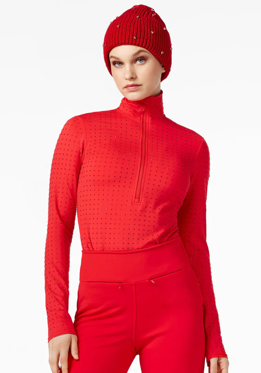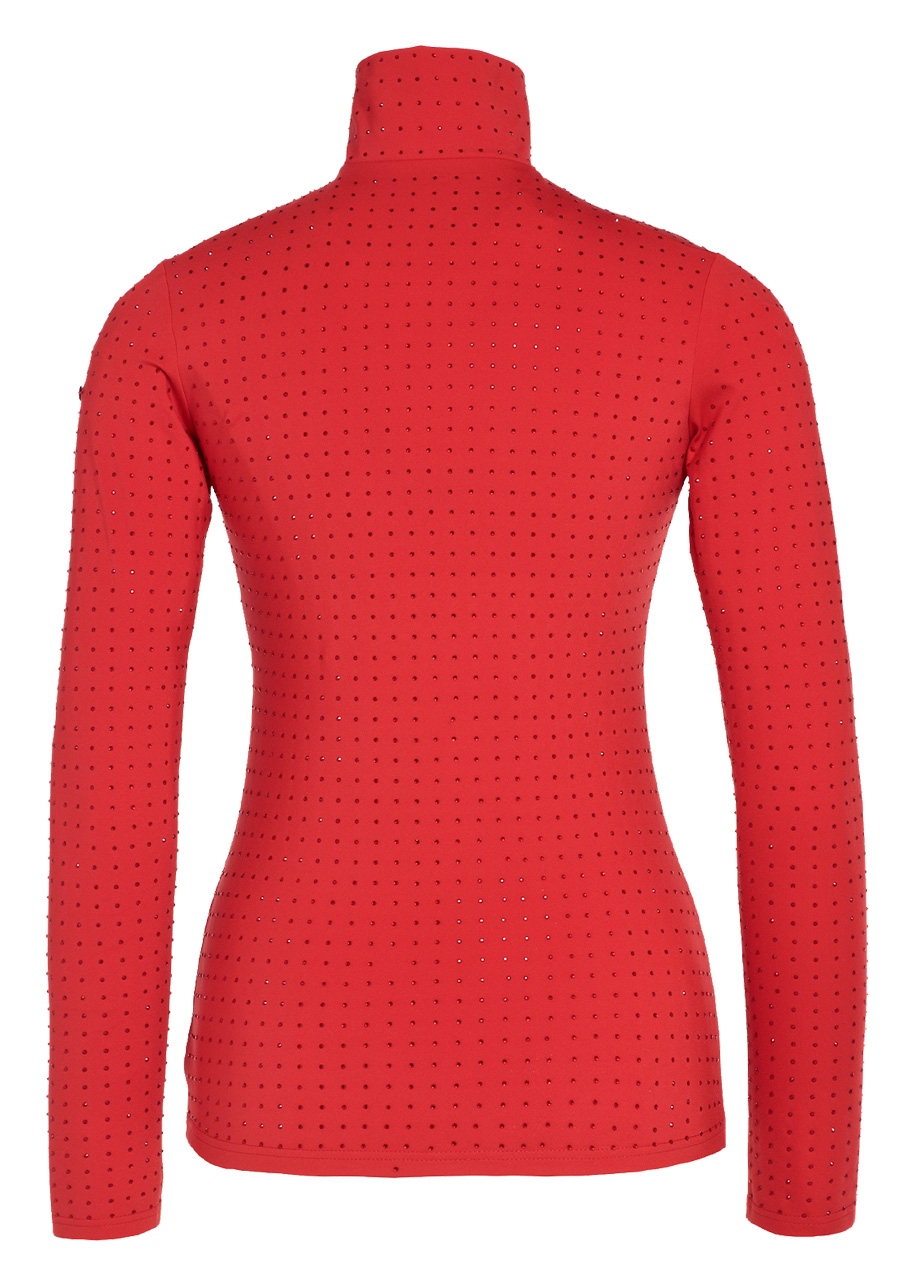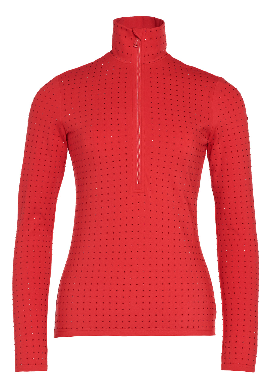 Goldbergh Spark Ski Pully w kolorze czerwonym to stylowy i funkcjonalny sportowy golf, idealny na zimowe aktywności. Model wykonany jest z elastycznego materiału z technologią Powerstretch, co zapewnia komfort i swobodę ruchów. Wewnętrzna, delikatnie drapana strona tkaniny zwiększa komfort cieplny. Golf jest szybkoschnący, oddychający i posiada specjalną powłokę antyodorową, która ogranicza powstawanie nieprzyjemnych zapachów. Na powierzchni znajdują się ozdobne kryształki, które nadają mu elegancki wygląd, oraz metalowa naszywka z logo na rękawie. Golf ma dopasowany krój (slim fit), wysoki kołnierz i dłuższy zamek z przodu, co ułatwia zakładanie. To doskonały wybór dla kobiet, które chcą wyglądać stylowo i jednocześnie cieszyć się sportem bez kompromisów w komforcie.