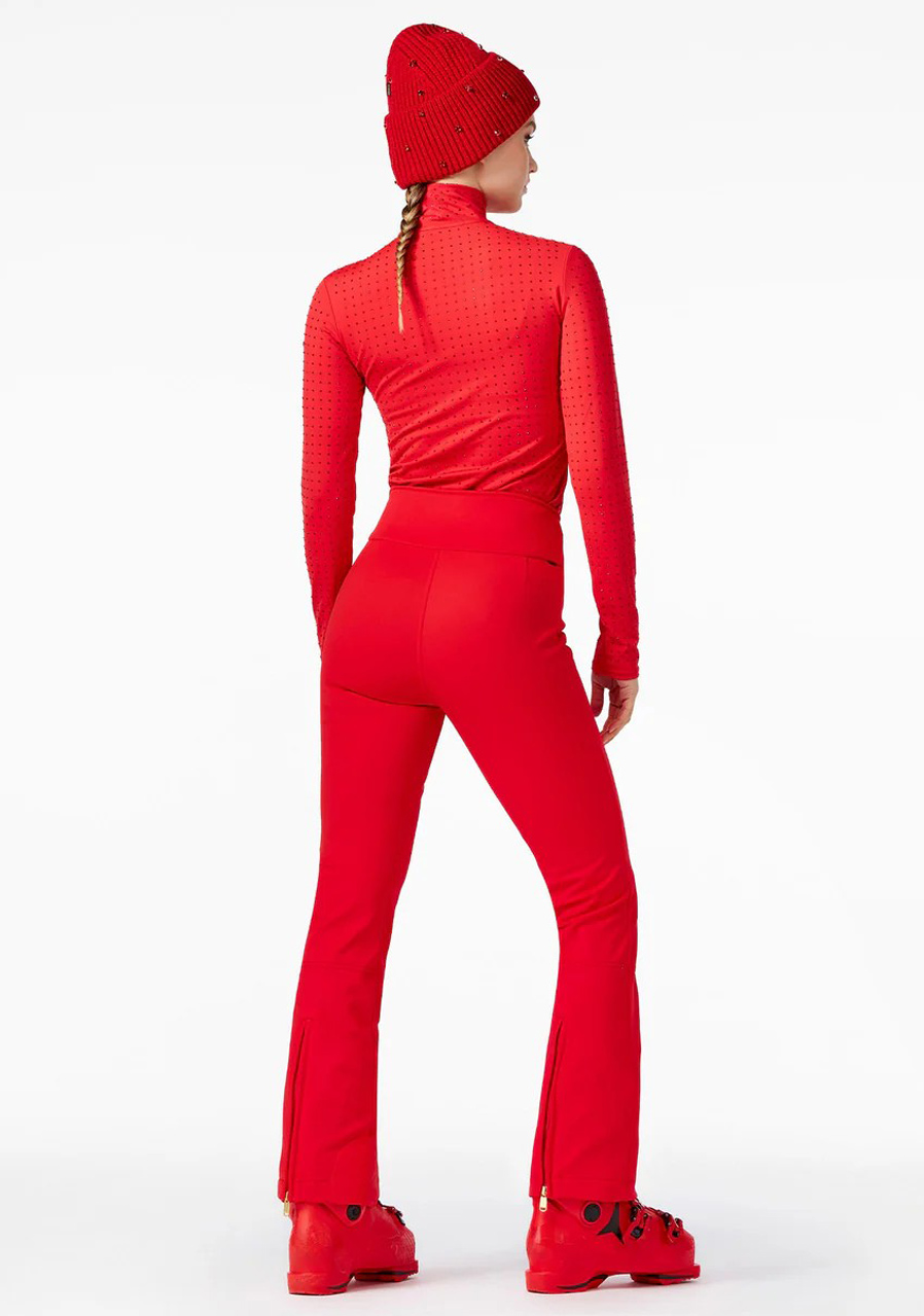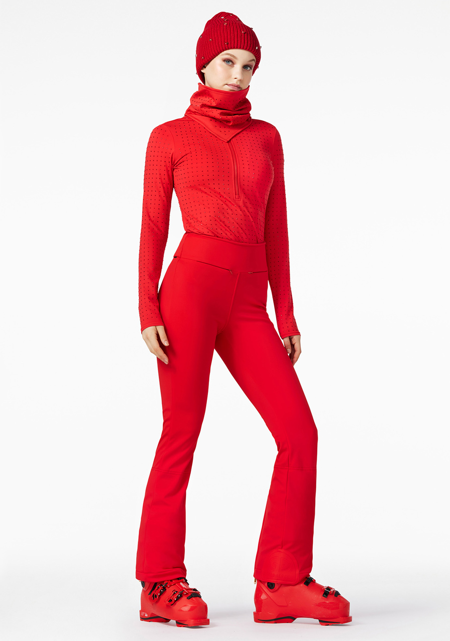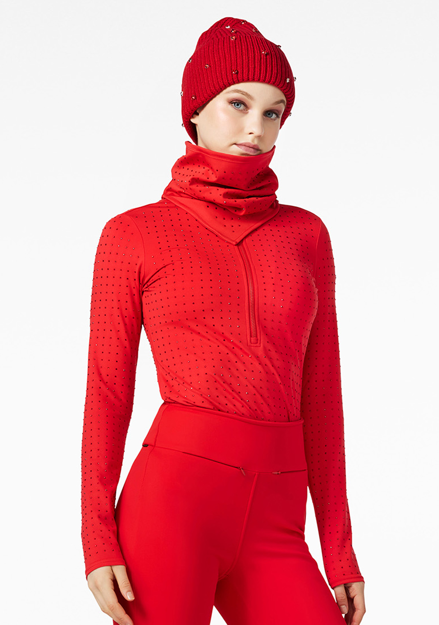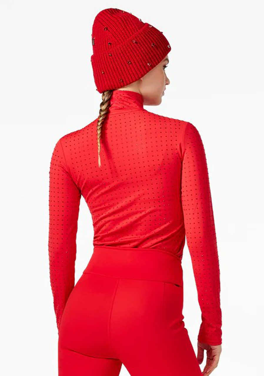 Goldbergh Spark Ski Pully w kolorze czerwonym to stylowy i funkcjonalny sportowy golf, idealny na zimowe aktywności. Model wykonany jest z elastycznego materiału z technologią Powerstretch, co zapewnia komfort i swobodę ruchów. Wewnętrzna, delikatnie drapana strona tkaniny zwiększa komfort cieplny. Golf jest szybkoschnący, oddychający i posiada specjalną powłokę antyodorową, która ogranicza powstawanie nieprzyjemnych zapachów. Na powierzchni znajdują się ozdobne kryształki, które nadają mu elegancki wygląd, oraz metalowa naszywka z logo na rękawie. Golf ma dopasowany krój (slim fit), wysoki kołnierz i dłuższy zamek z przodu, co ułatwia zakładanie. To doskonały wybór dla kobiet, które chcą wyglądać stylowo i jednocześnie cieszyć się sportem bez kompromisów w komforcie.