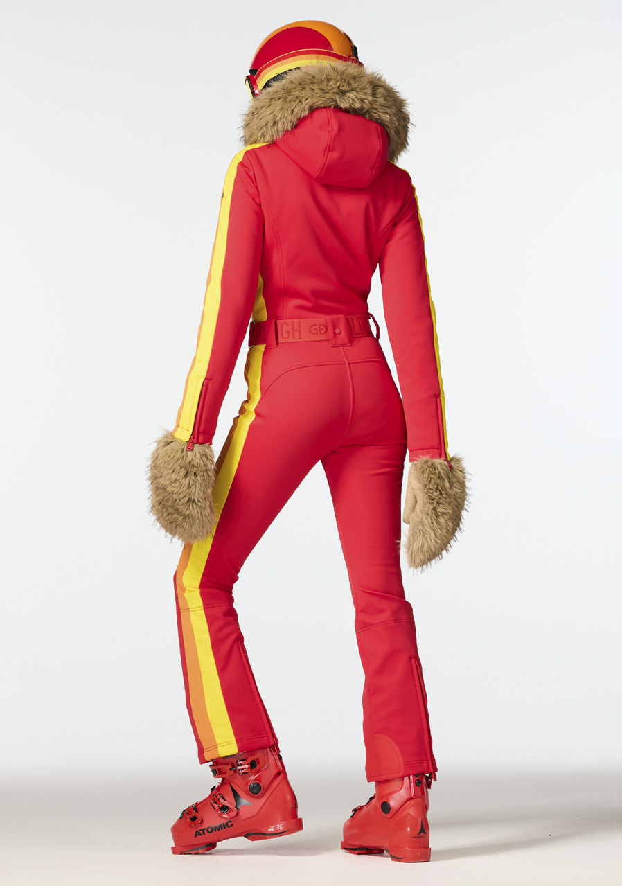 Ten kombinezon w kroju slim fit został zaprojektowany dla narciarek, które cenią nie tylko funkcjonalność, ale także nowoczesny design z wyraźnymi kontrastującymi detalami na bocznych szwach i rękawach wykonanych z materiału wierzchniego. Połączenie certyfikowanego puchu kaczego (RDS) oraz ociepliny Primaloft® zapewnia doskonałe ciepło i lekkość. Elastyczna podszewka z wykończeniem antybakteryjnym przyczynia się do długotrwałego komfortu. Kombinezon wyposażony jest w cztery kieszenie, w tym wewnętrzne oraz kieszeń na skipass, elastyczny pasek, zamki na rękawach i tylnym obszyciu oraz śnieżny mankiet na dole. Model dostępny jest również w wersji z futrzanym obszyciem pod kodem GB016-96-254.