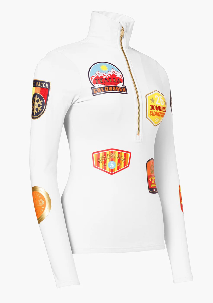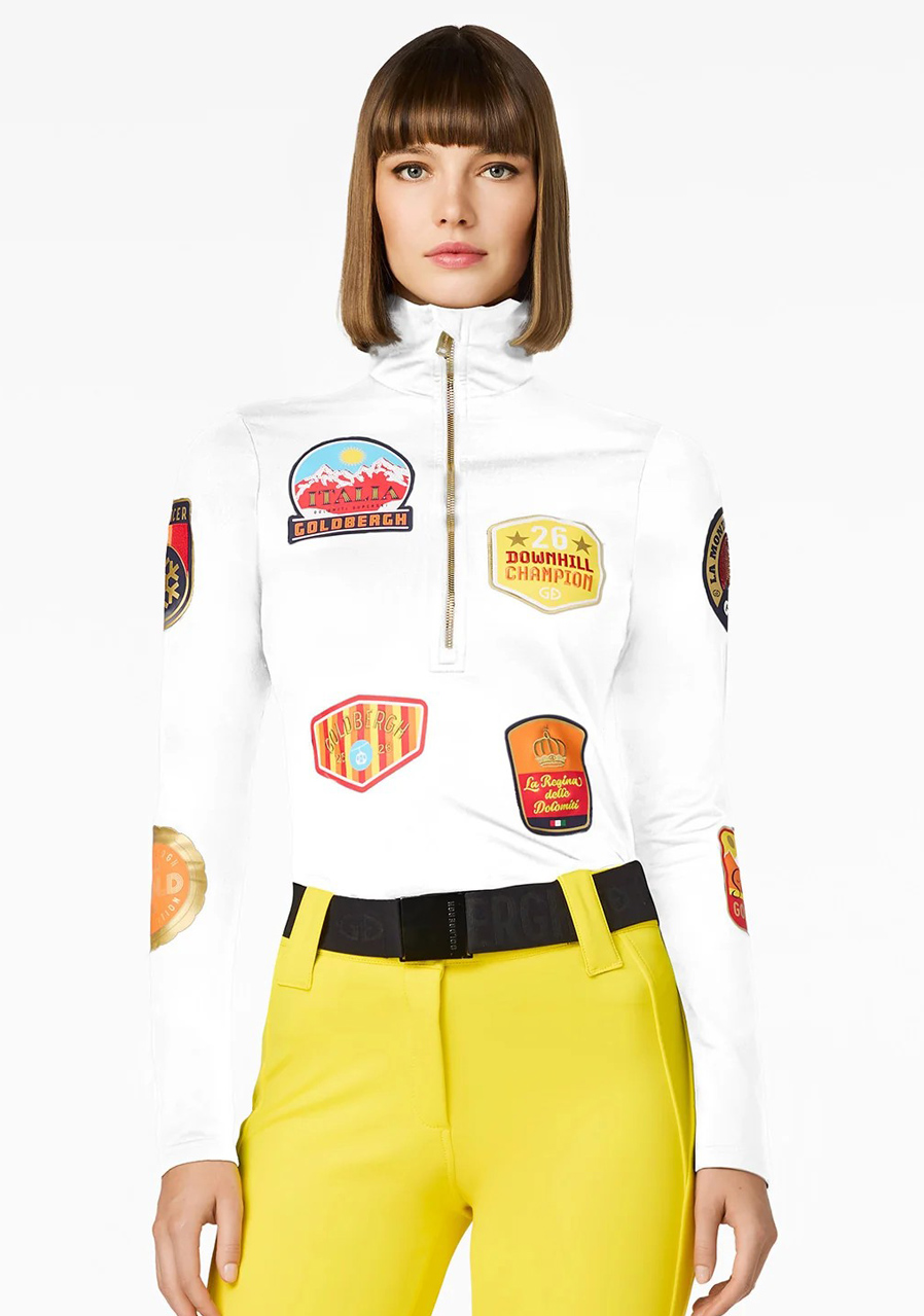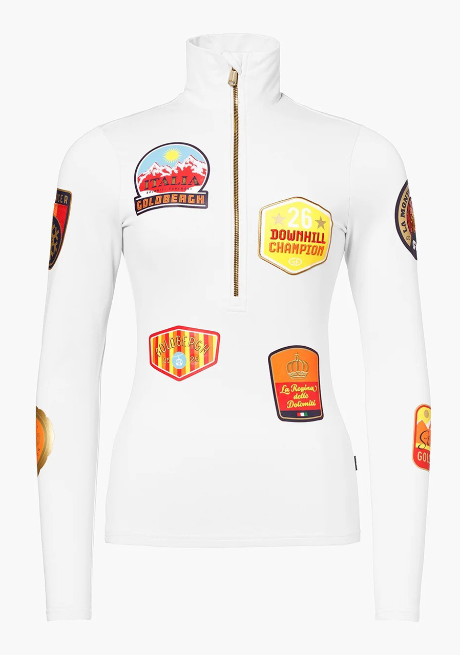 Ta koszulka o kroju slim fit wykonana jest z elastycznego dżerseju z miękką, szczotkowaną stroną wewnętrzną, która zapewnia komfort i utrzymuje ciepło. Model posiada wąską stójkę, przedłużony ½ zamek i jest ozdobiony pełnokolorowym nadrukiem oraz haftowanymi emblematami dla stylowego wyglądu. Dzięki szybkoschnącemu materiałowi z technologią kontroli wilgoci i wykończeniu anti-odor koszulka nadaje się zarówno do sportów zimowych, jak i do czasu wolnego.