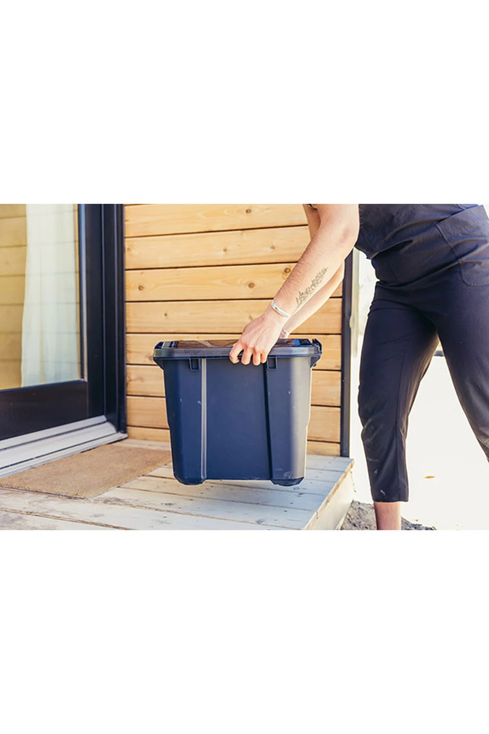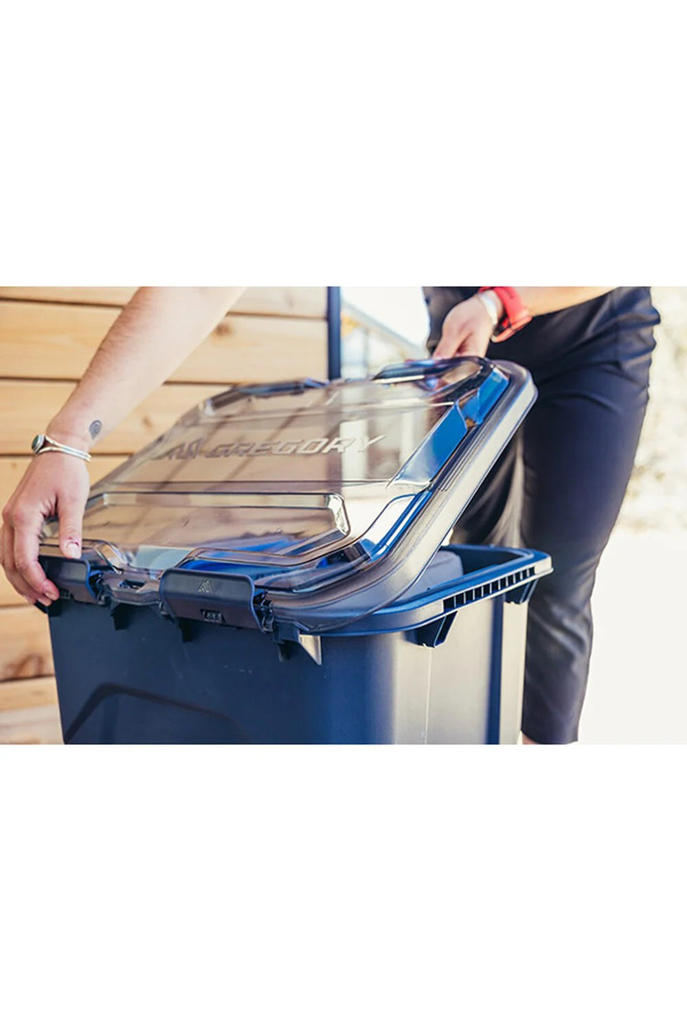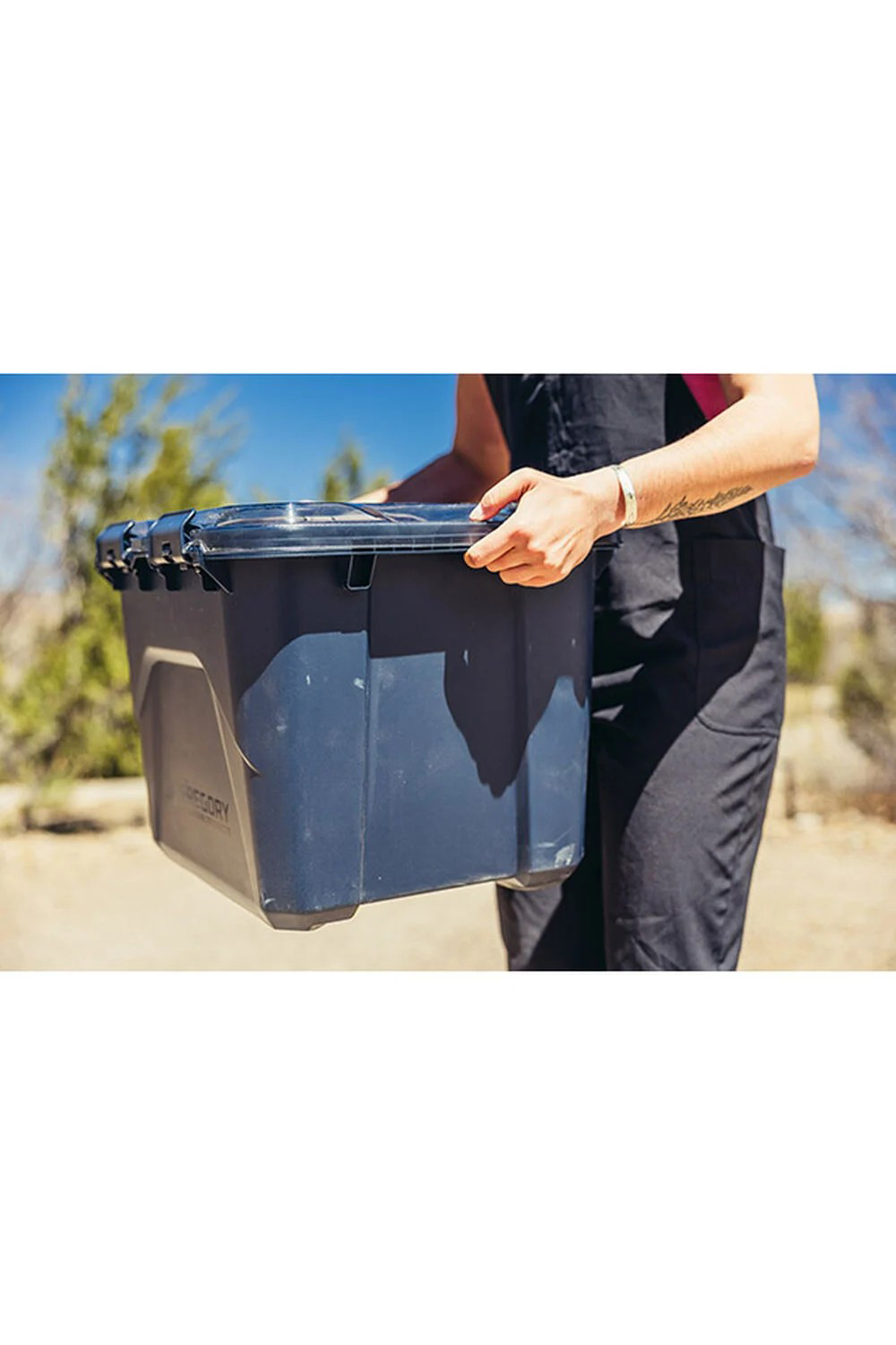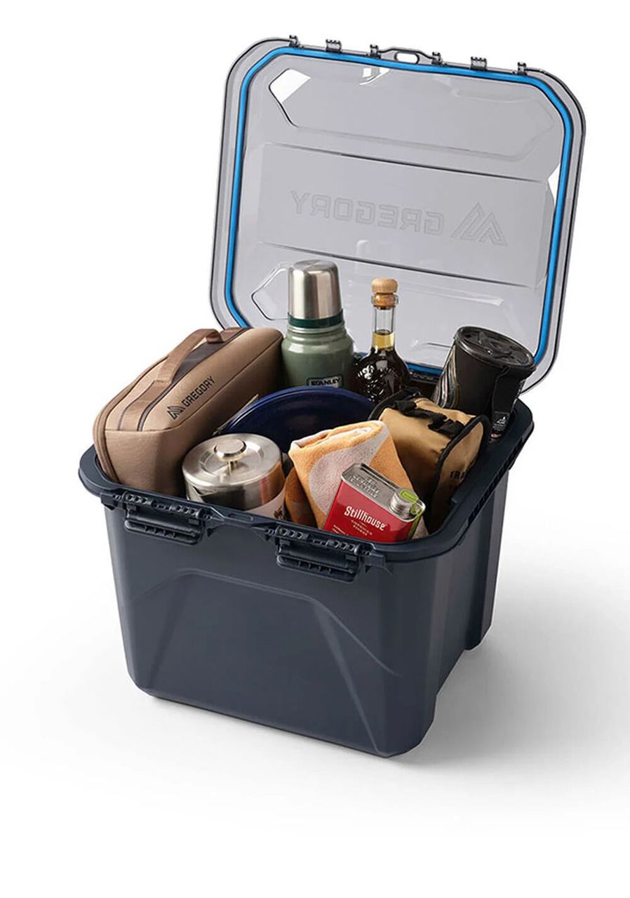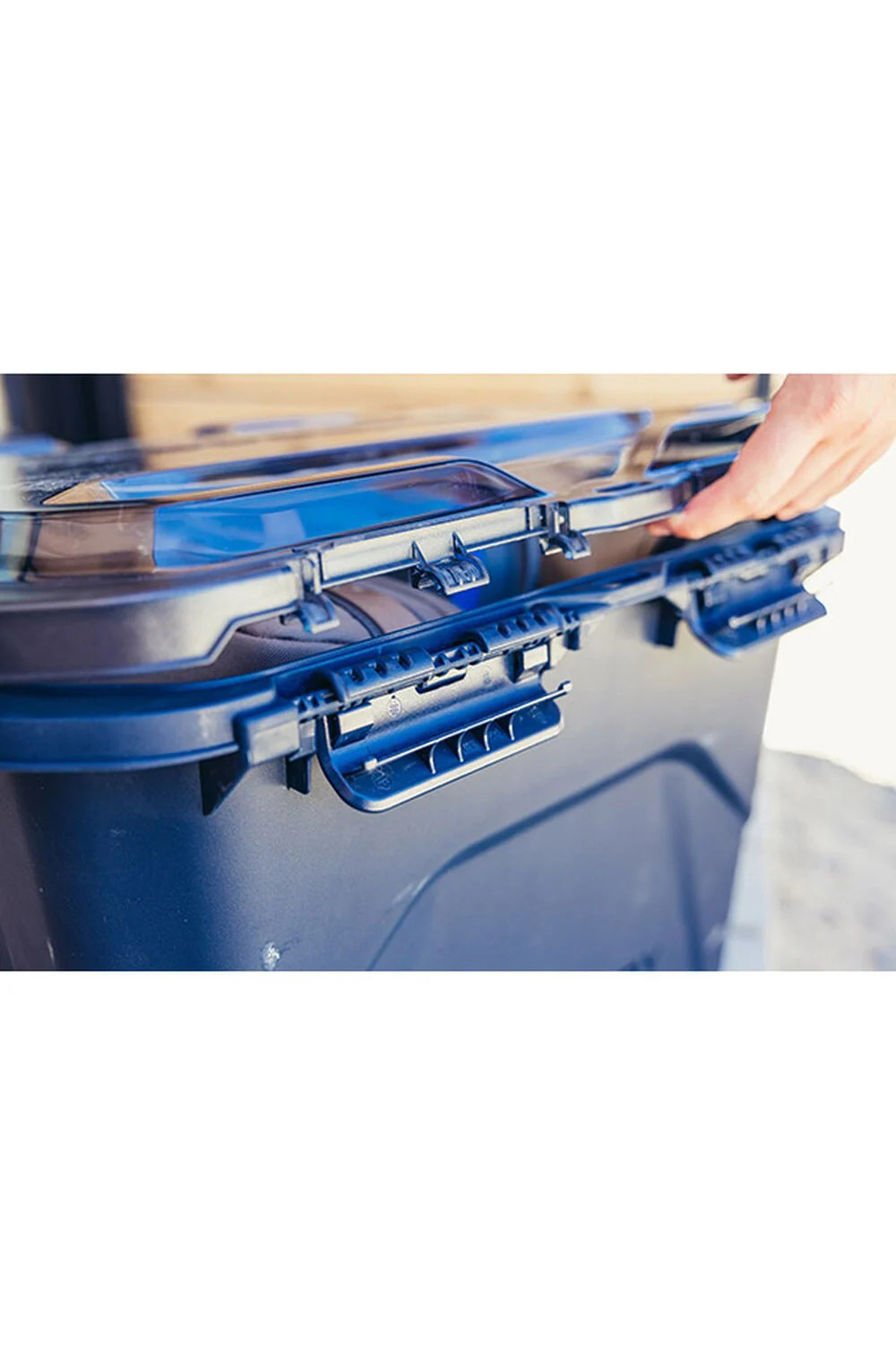 Solidna skrzynia o pojemności 50 litrów przeznaczona do uporządkowanego przechowywania sprzętu podczas kempingu, podróży lub aktywności sportowych. Sztywne ścianki i pokrywa chronią zawartość i zachowują kształt. Przegrody wewnętrzne i siatkowe kieszenie ułatwiają organizację. Wykonana z materiałów pochodzących z recyklingu, posiada uchwyty do wygodnego przenoszenia. Kolor Slate Blue nadaje całości stylowego wyglądu.